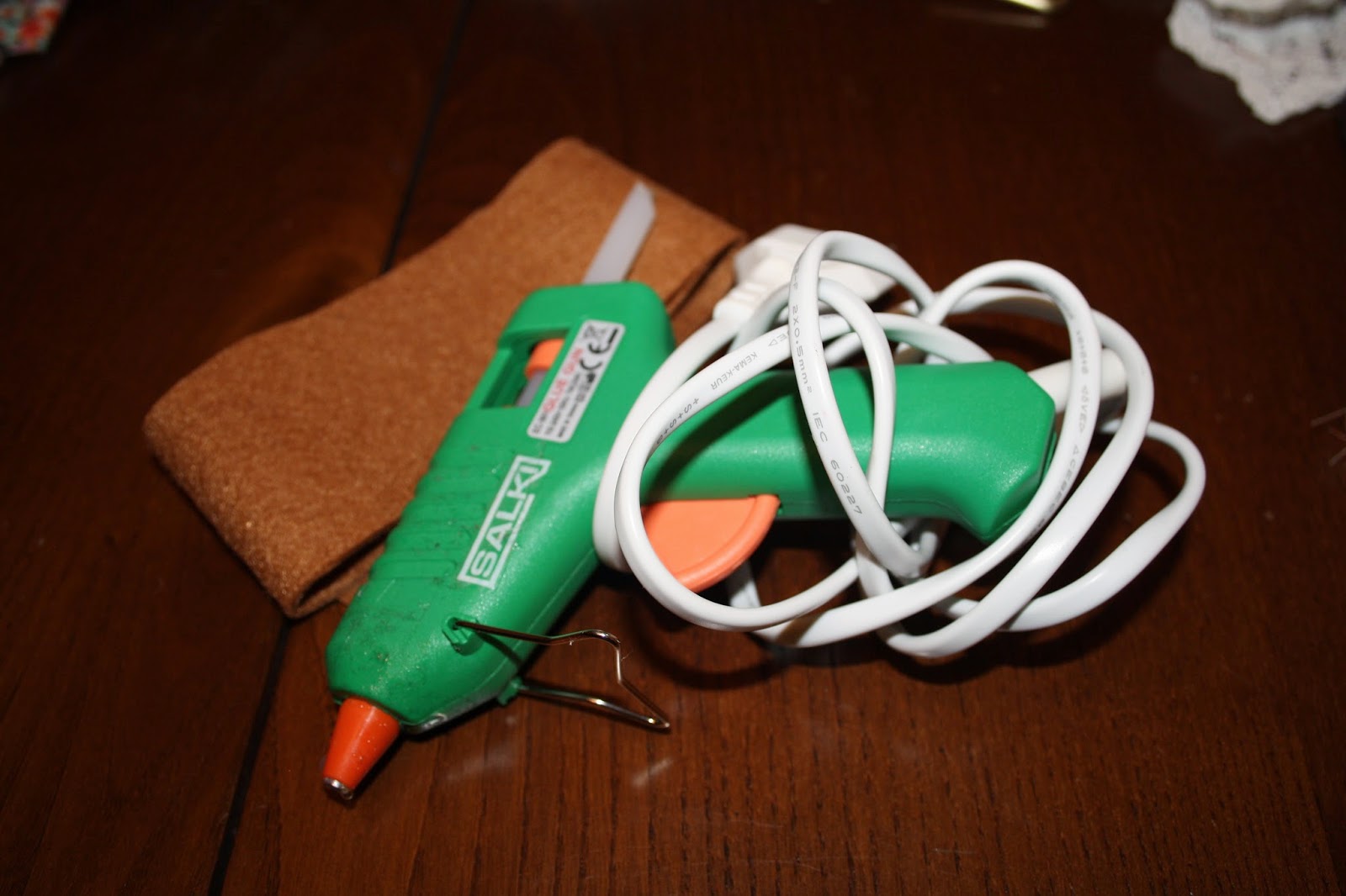 Como elemento indispensable usaremos una base de fieltro de color marrón o camel al igual que en el post anterior (el largo lo mediremos para que nos quede adecuado al tamaño de las botas y el ancho será de aproximadamente 5 cms). También nos ayudaremos de la pistola de silicona.