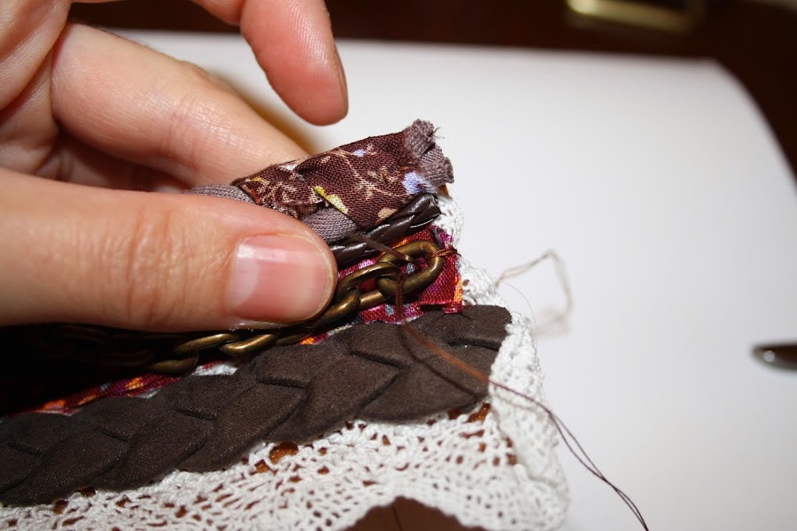 En el caso de la cadena, como va a ir suelta, la fijaremos con hilo en los extremos.