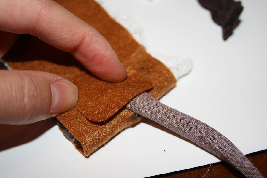 Luego con un trozo de fieltro del mismo color taperemos los extremos.