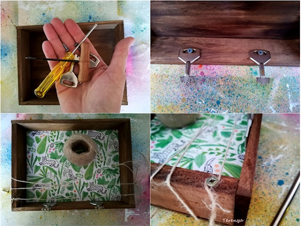 El diy que he hecho con una de ellas es un cuelga-llaves y guarda cartas. Muy fácil y sencillo y lo mejor es que casi no he utilizado material extra como quien dice.