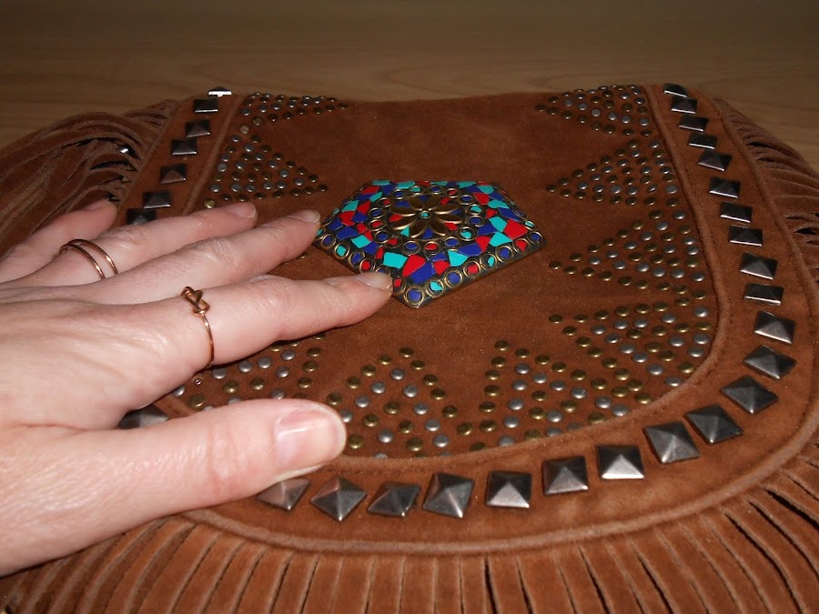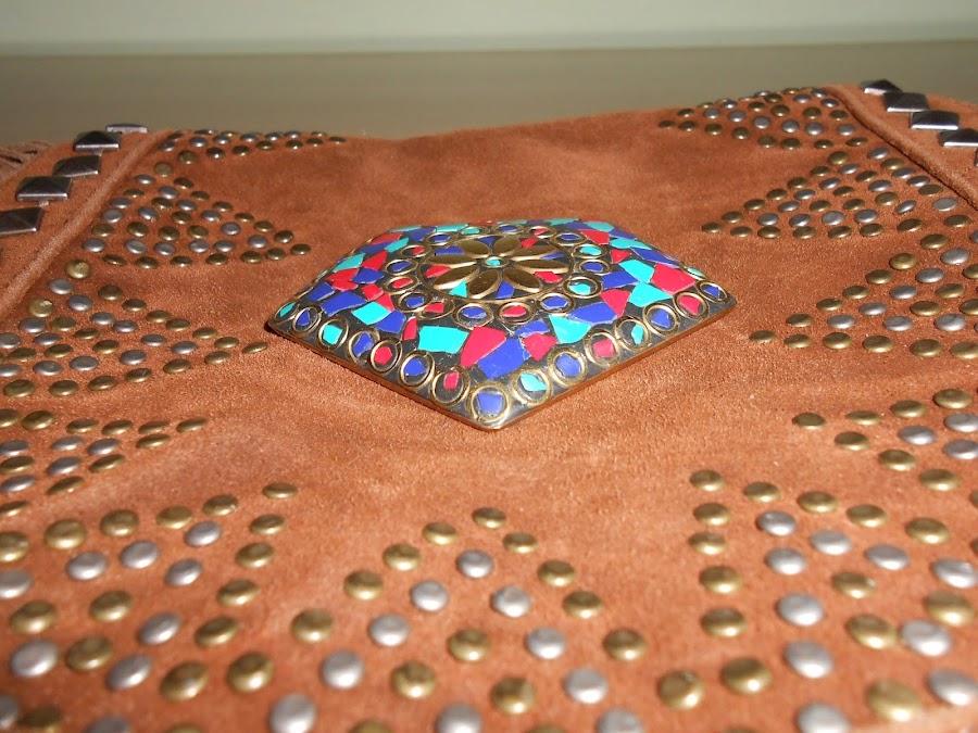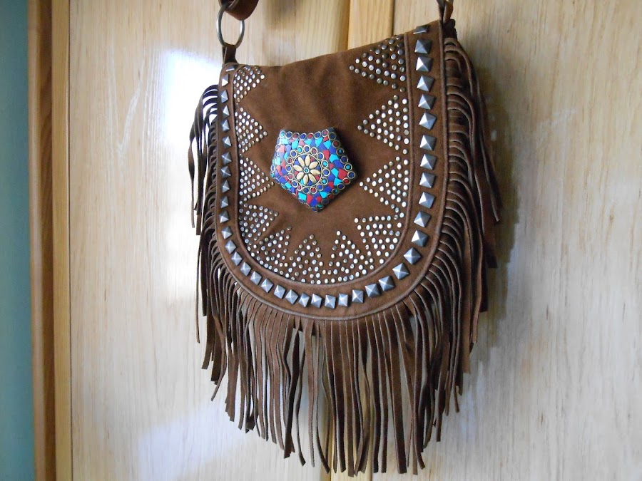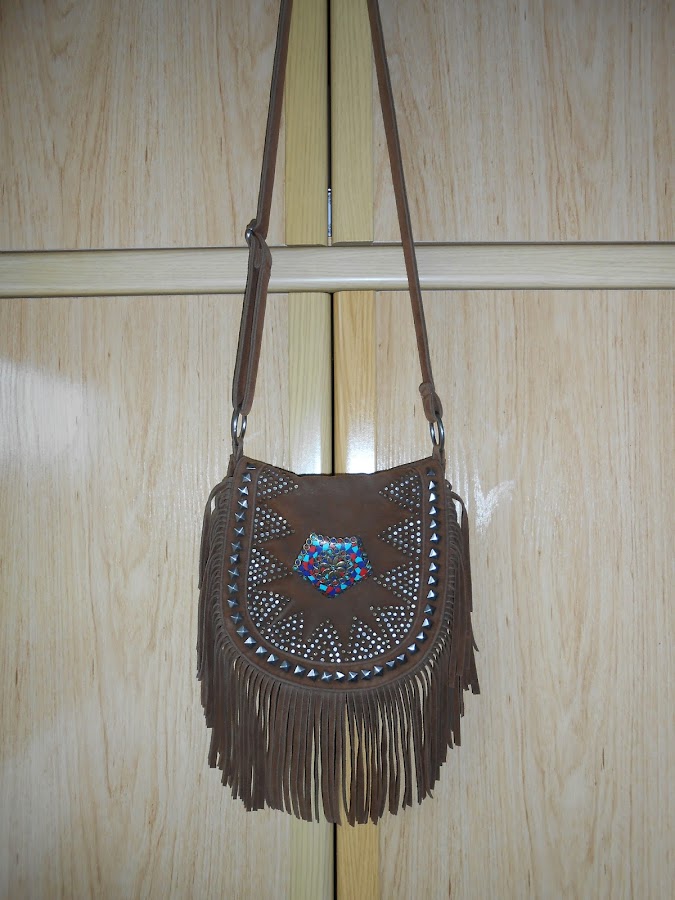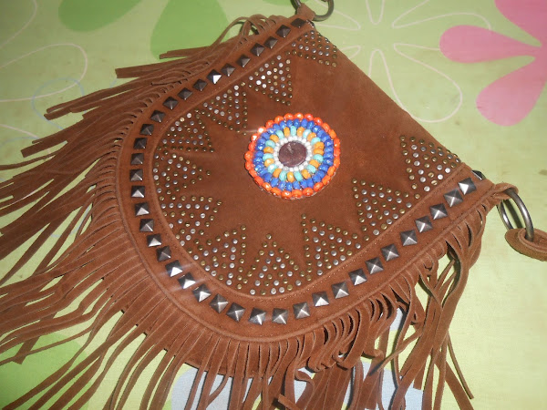 Un buen día se me encendió la bombilla y se me ocurrió que podía juntar ambas partes y así conseguir un toque un poco más bohemio al bolso.