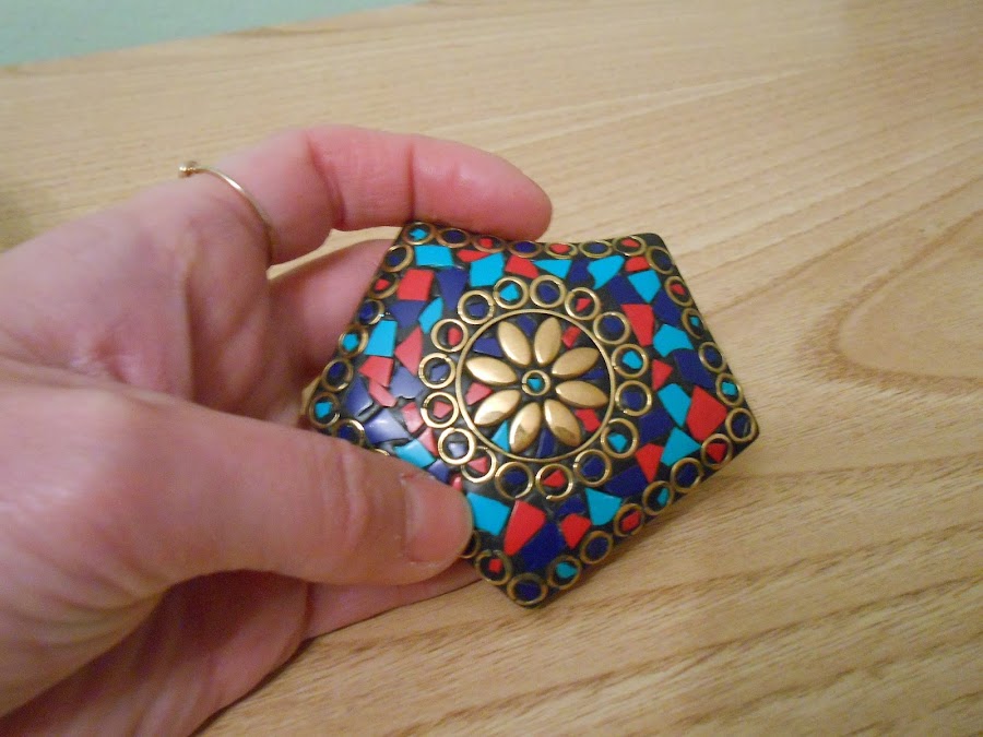 También tenía esta pieza metálica de un collar que me chiflaba pero que estaba roto. Y como me parecía superbonita, la tenía guardada en mi cajón desastre (donde guardo todas las cosas que creo que puedo aprovechar; algún día os hablaré de él).
