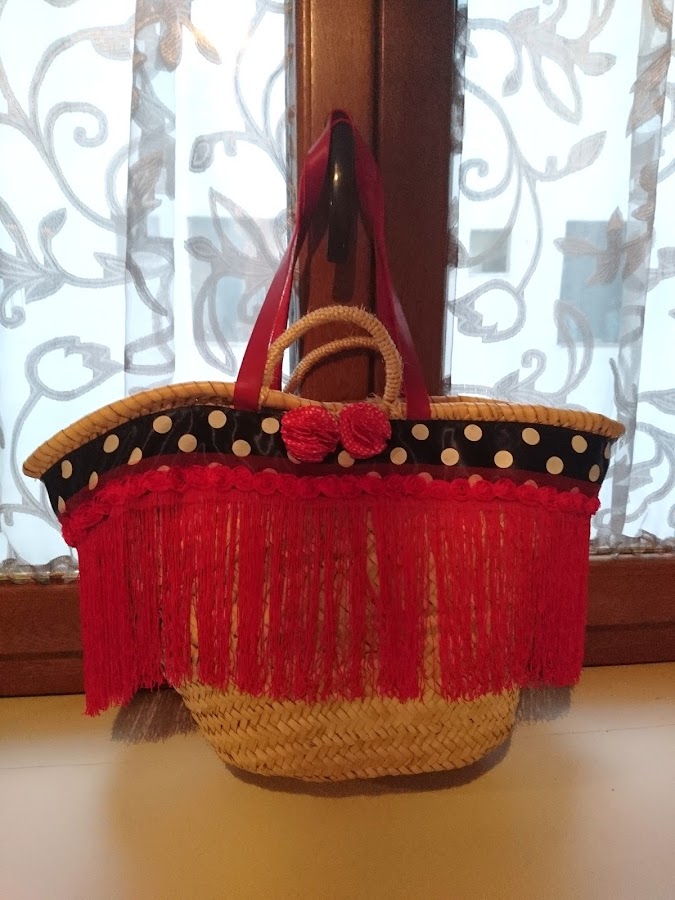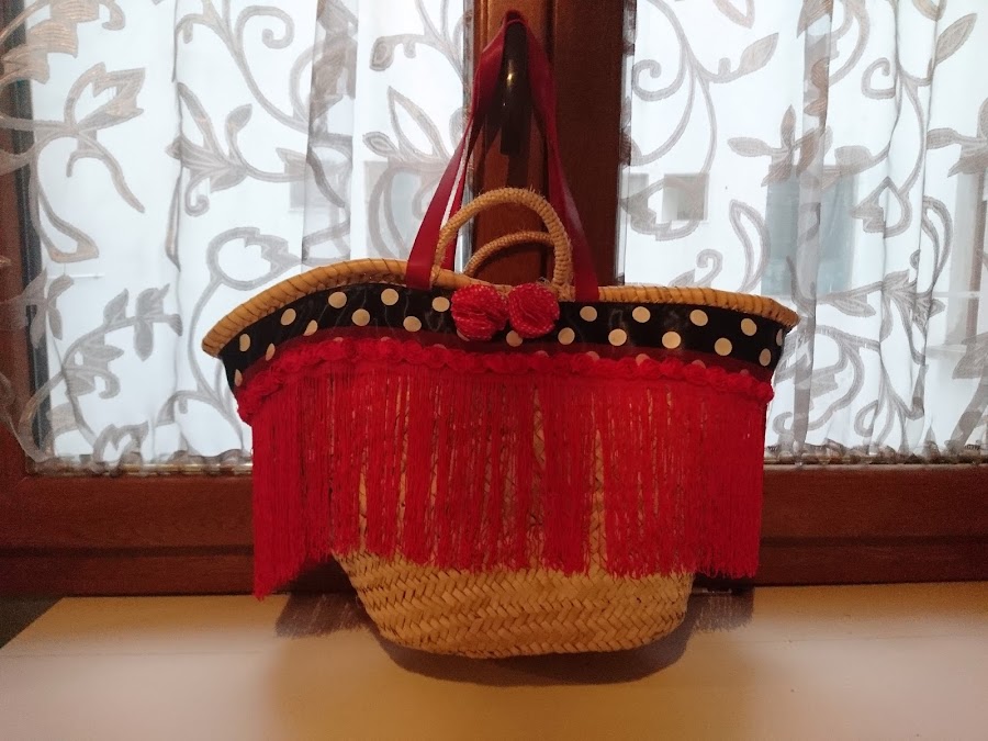 En segundo lugar vamos a coser las cintas y los flecos entre sí pues es más sencillo coser todas las cintas juntas en el capazo, en lugar de coser una a una. Antes de coser las cintas entre sí medimos el contorno del capazo para tomar la medida exacta.