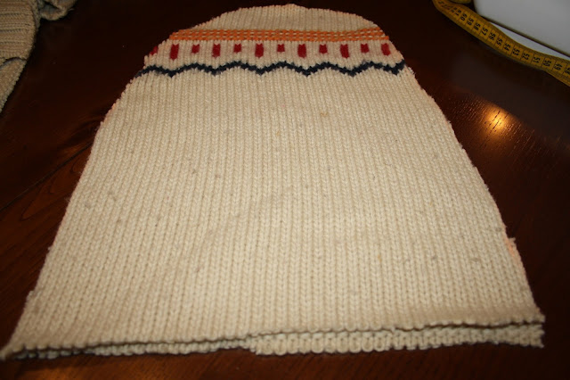Como me quedó demasiado largo, tuve que cortar la cenefa (que es la parte del bajo del jersey) porque pretendía aprovechar el dibujo del final.