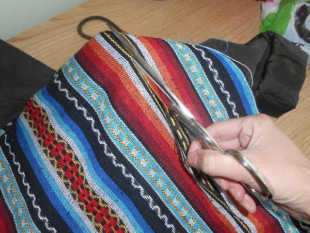 Una vez que comprobamos que sobran unos 2 o 3 centímetros de tela alrededor de las costuras, cortamos el sobrante de la tela.