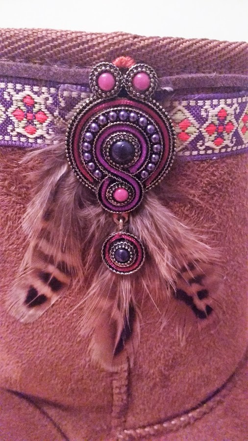 También he usado plumas, lazos étnicos (vale cualquiera de pasamanería), pistola de silicona, aguja e hilo y una cinta de cuero.