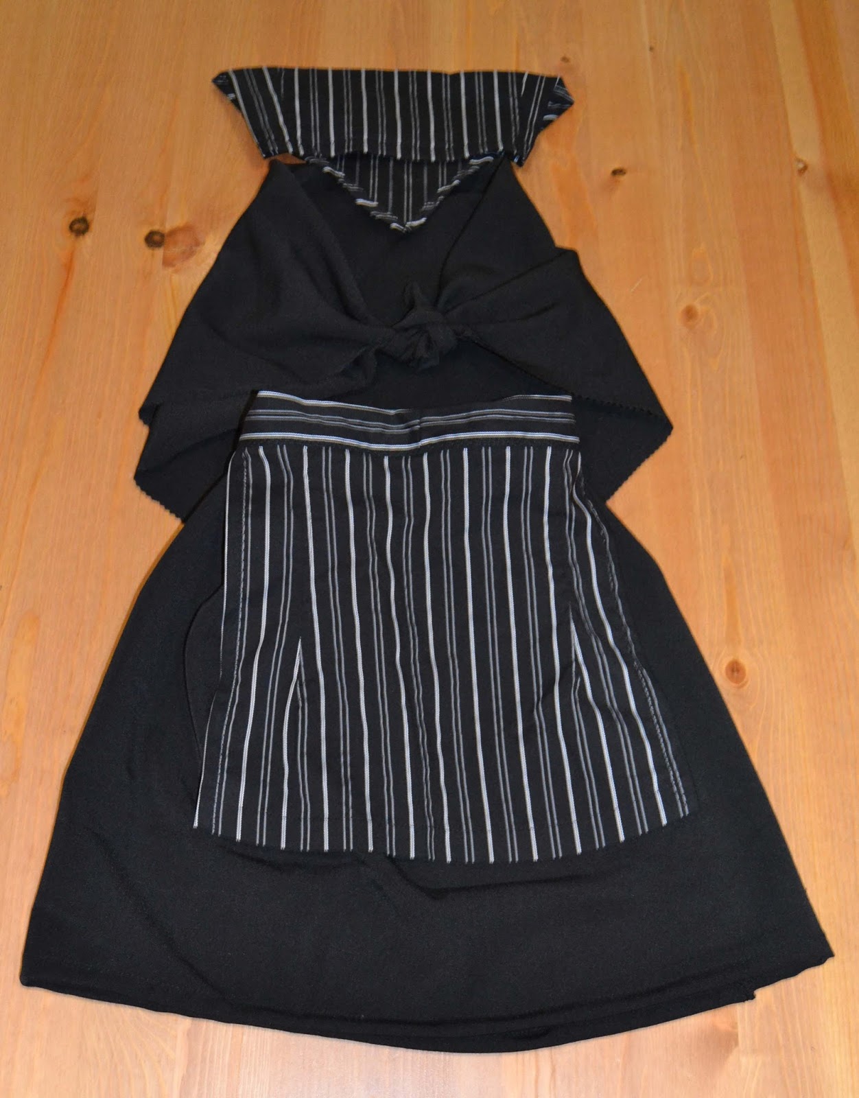 De una camisa que me dieron y tenia para reciclar, he sacado el delantal y el pañuelo de la cabeza.