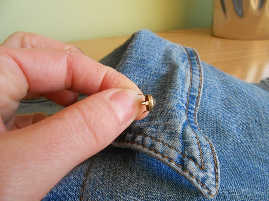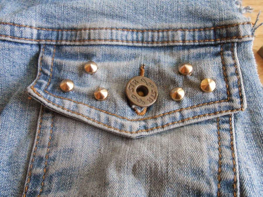 Después de pintar le he añadido unas tachuelas en la parte delantera de los bolsillos.