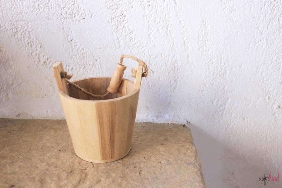 Lo primero que hacemos es limpiar la maceta. Esta vez la cesta es de madera y necesitaremos hacerle un agujerito bajo para que la planta drene el agua.