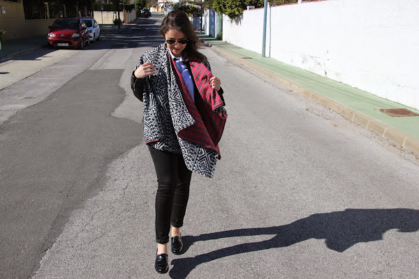 Las telas que se han utilizado para hacer el poncho las compré en Ribes&Casals. Una de ellas la podéis encontrar online aquí.