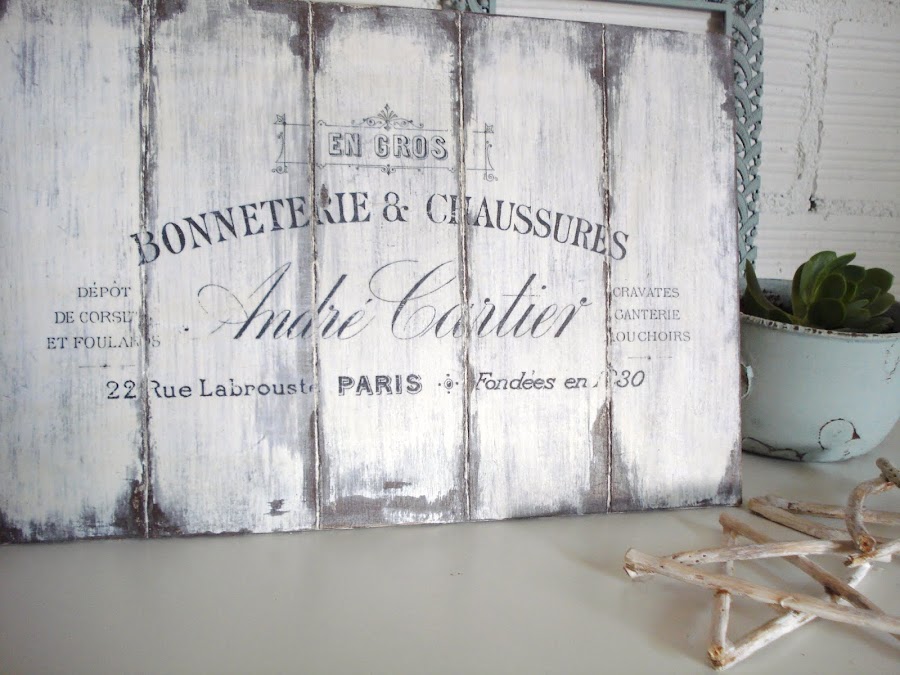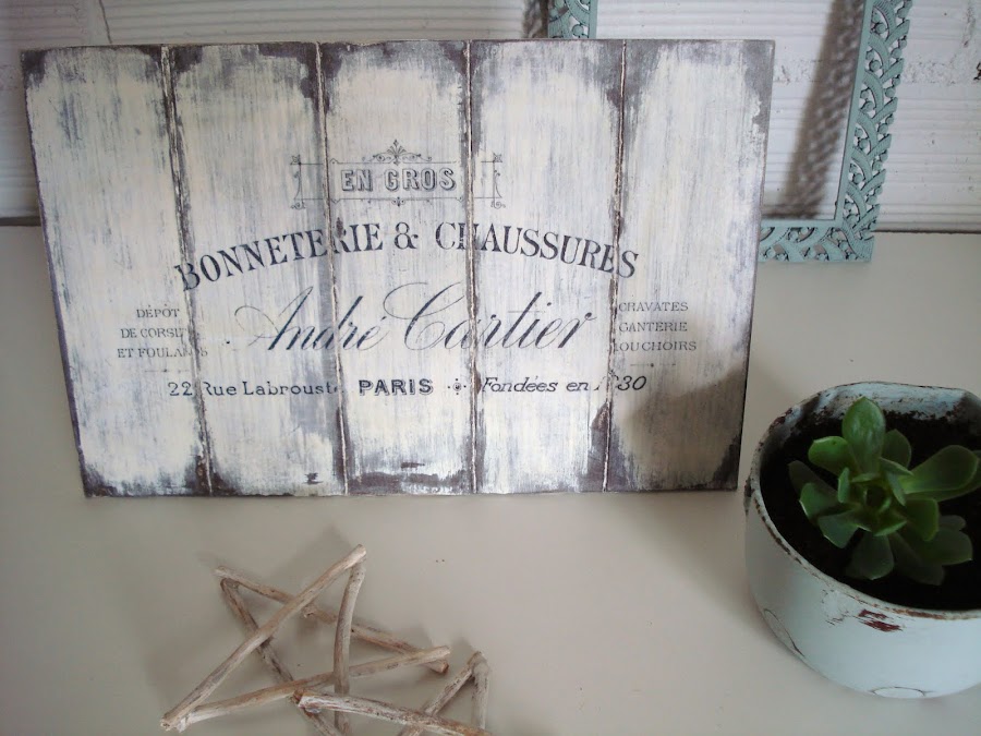 Pintura blanca y a lijar para que se vea la pintura de la base.