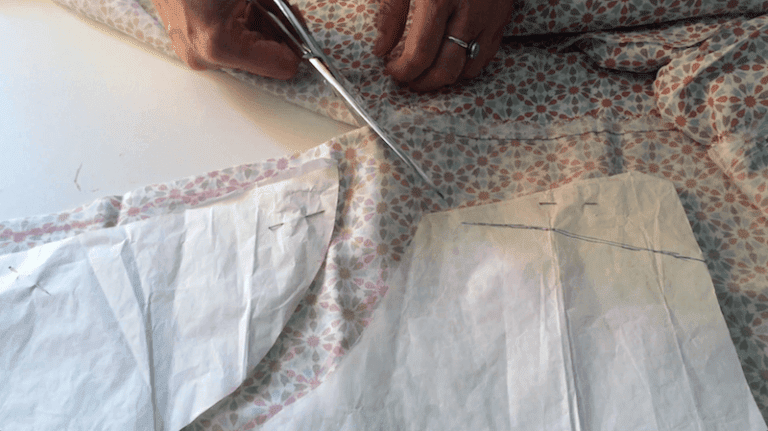 Recortamos la tela dejando un centímetro más de patrón, que servirá para las costuras.
