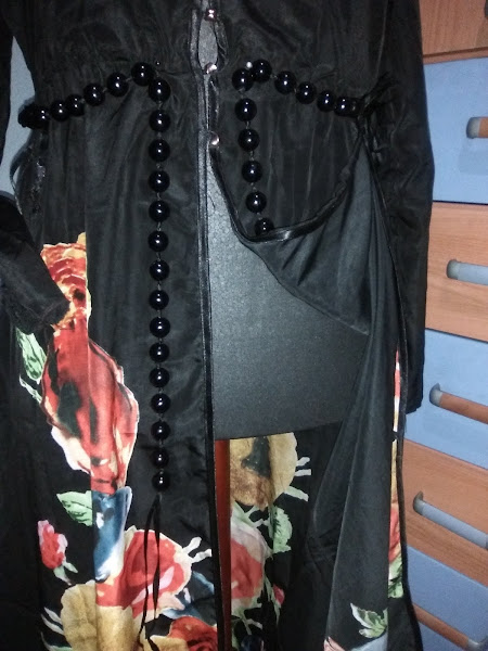 Le añadi unos ojales y unos botoncitos dorados y unas presillas para poner un cinturón a la cintura,