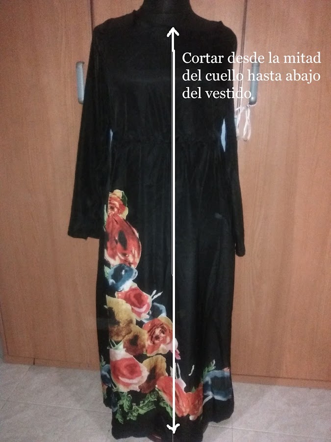 Lo primero que hice fue doblarlo por la mitad marcandolo por la parte delantera desde ma mitad del escote a la mitad del bajo.