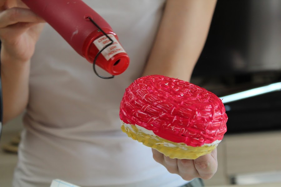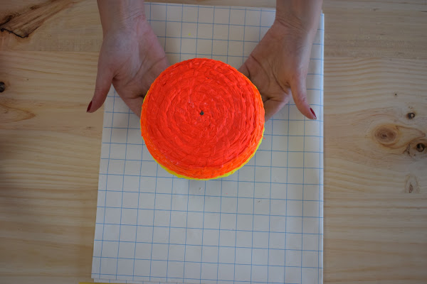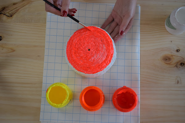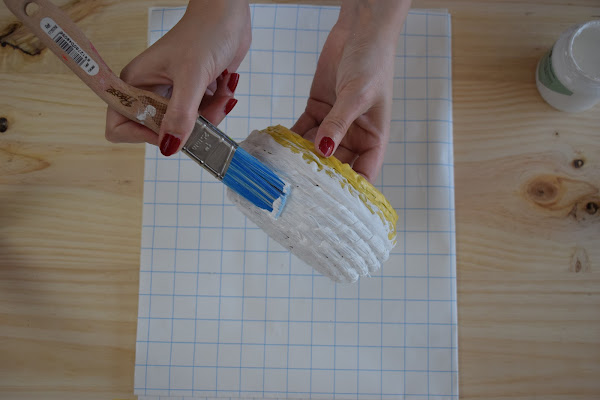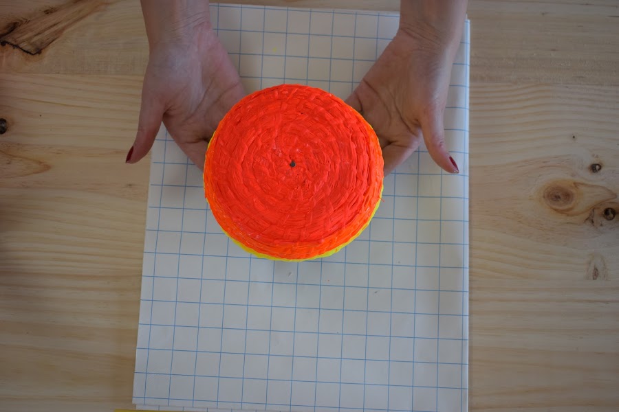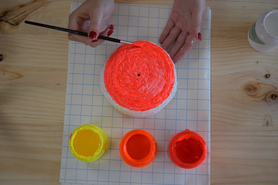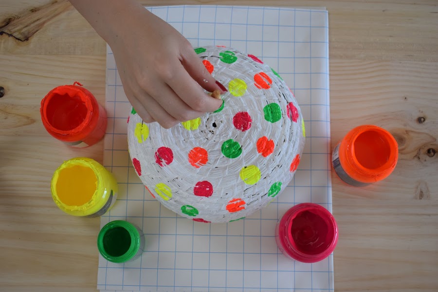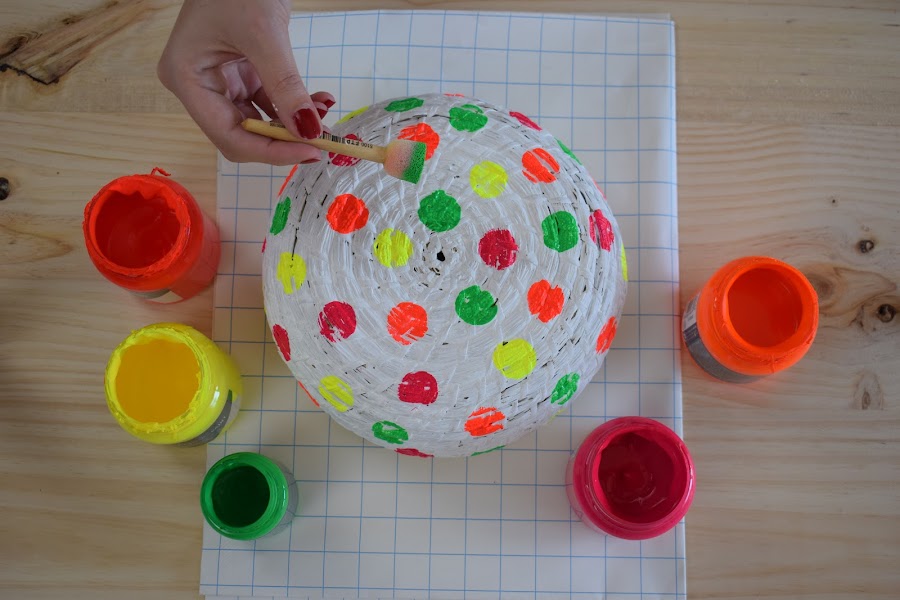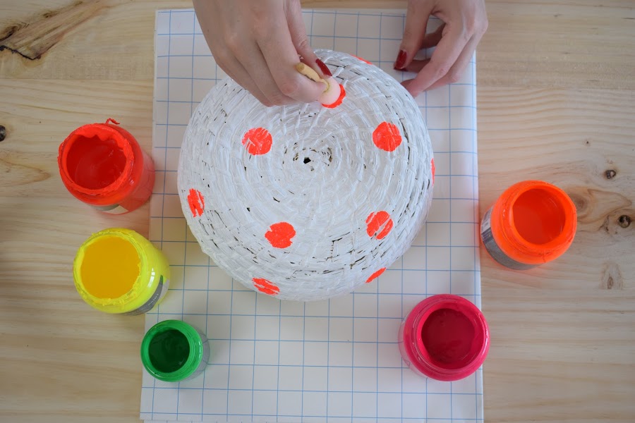 Paso 3: Con una esponja redonda o cualquier objeto que nos sirva haremos varias estimaciones en el cesto creando una combinación de colores y dejaremos secar.