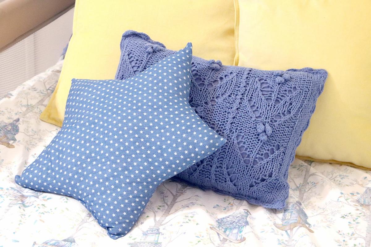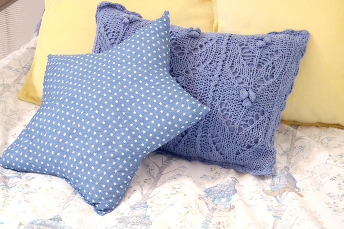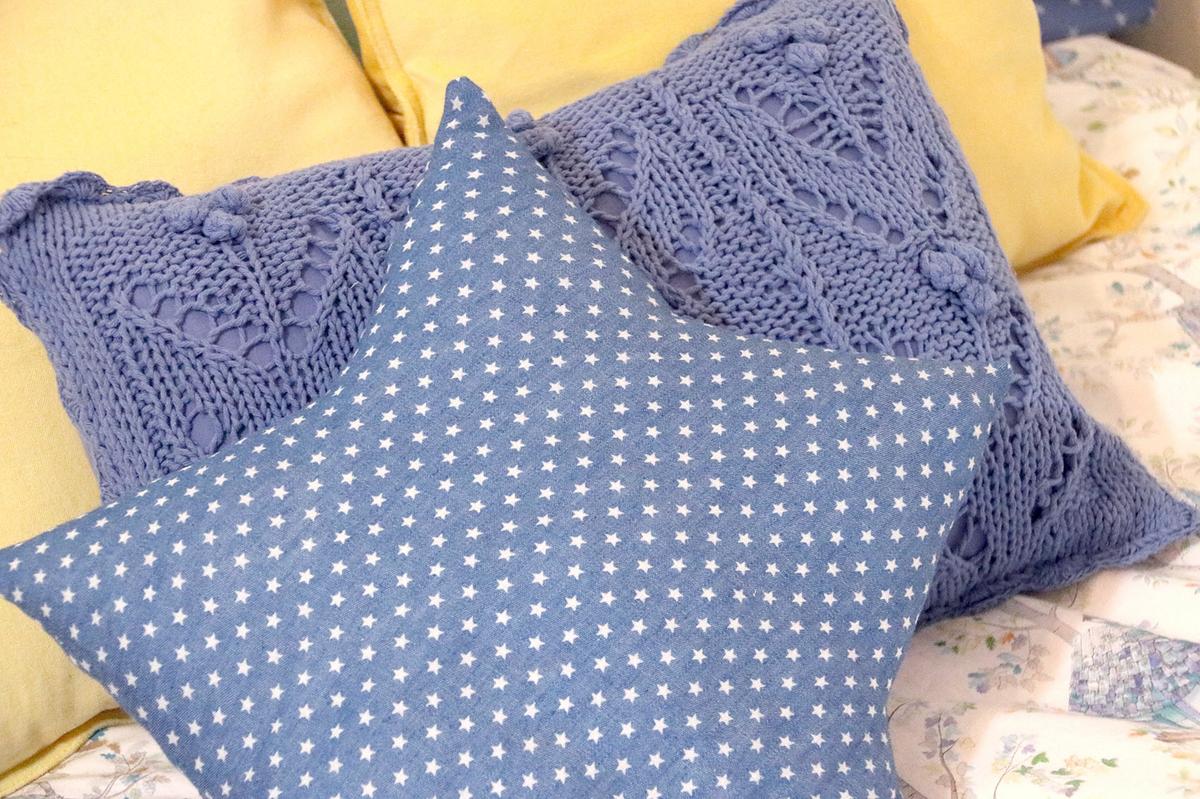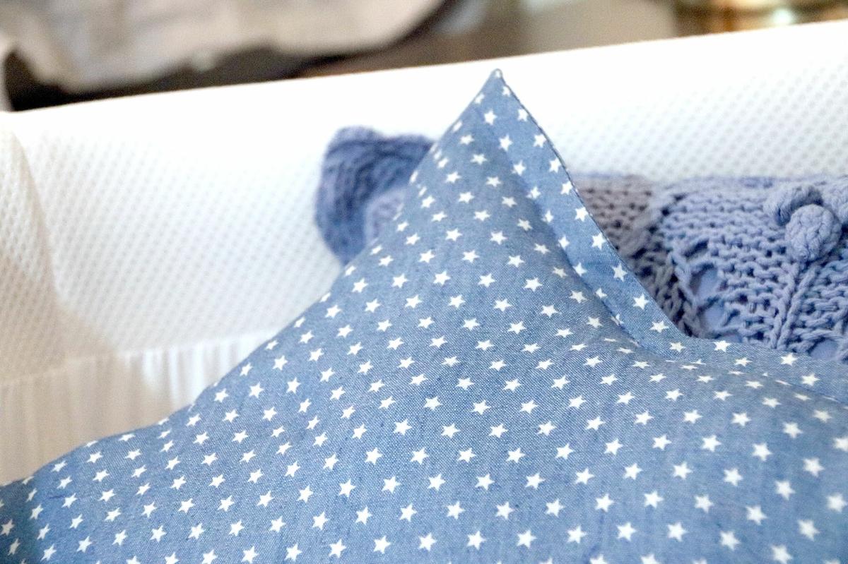 La tela que he utilizado para este cojín es una tela vaquera o denim muy finita con estampado de estrellas.