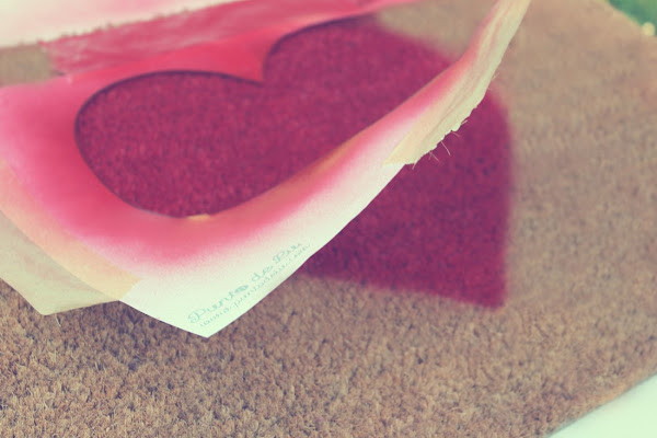Ya sólo nos queda esperar el tiempo de secado recomendado por el fabricante (en mi caso lo he dejado una hora), retirar la plantilla y ¡listo! Ya tenemos nuestro felpudo personalizado con un corazón lleno de amor.