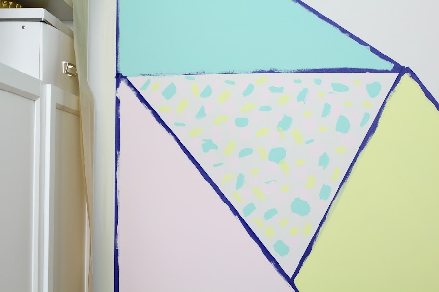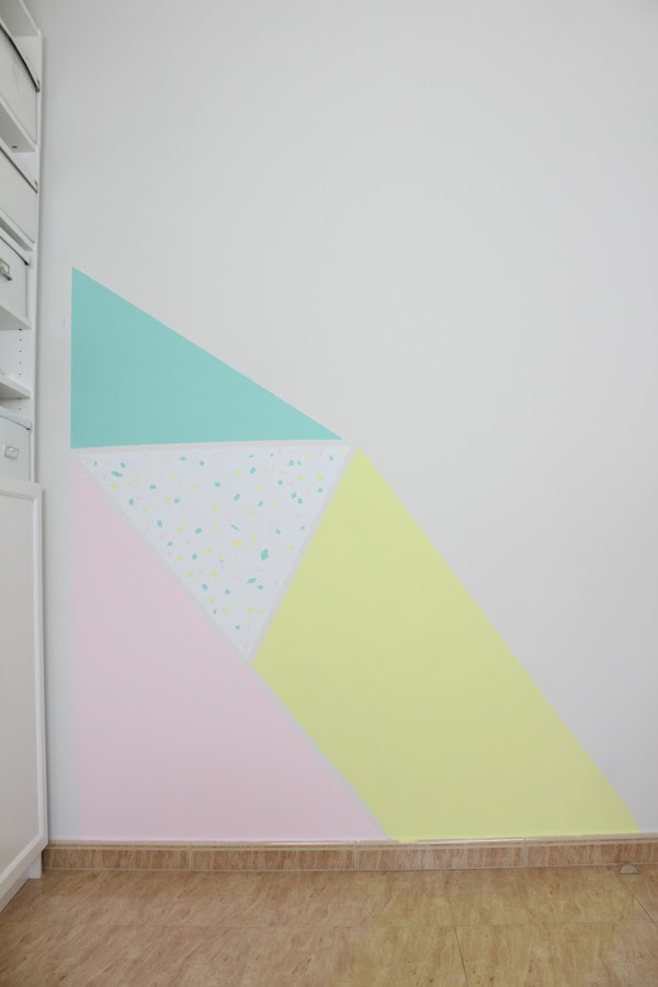 Segunda idea, darle un toque de color a tu habitación creando con washi figuras geométricas. Con esta idea puedes pintar un rincón de la pared y con ello darle otro aire sin tener que pintar por completo.