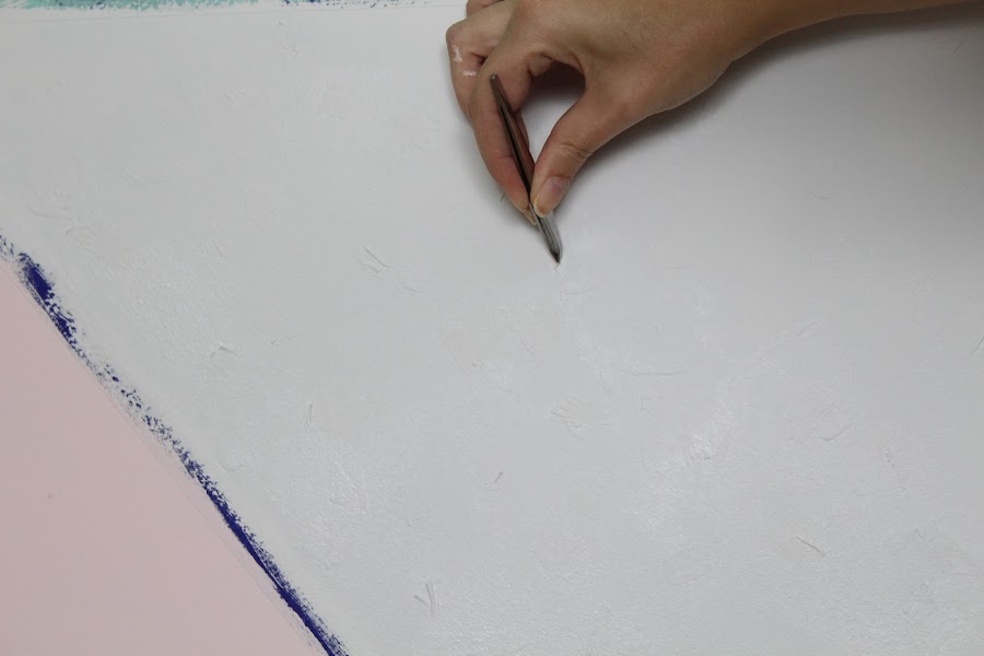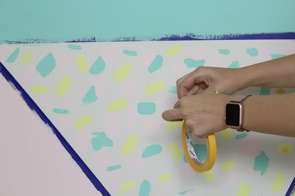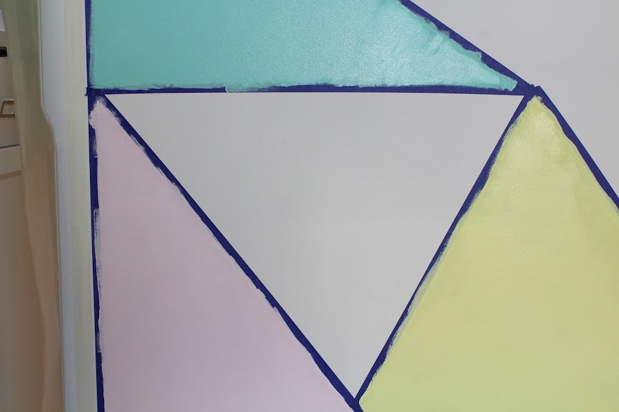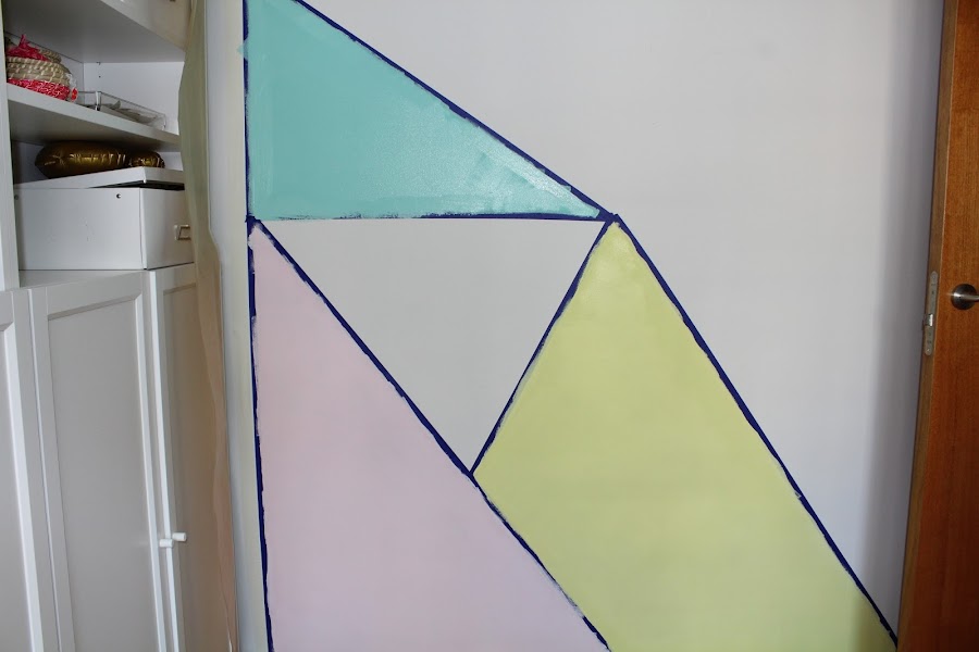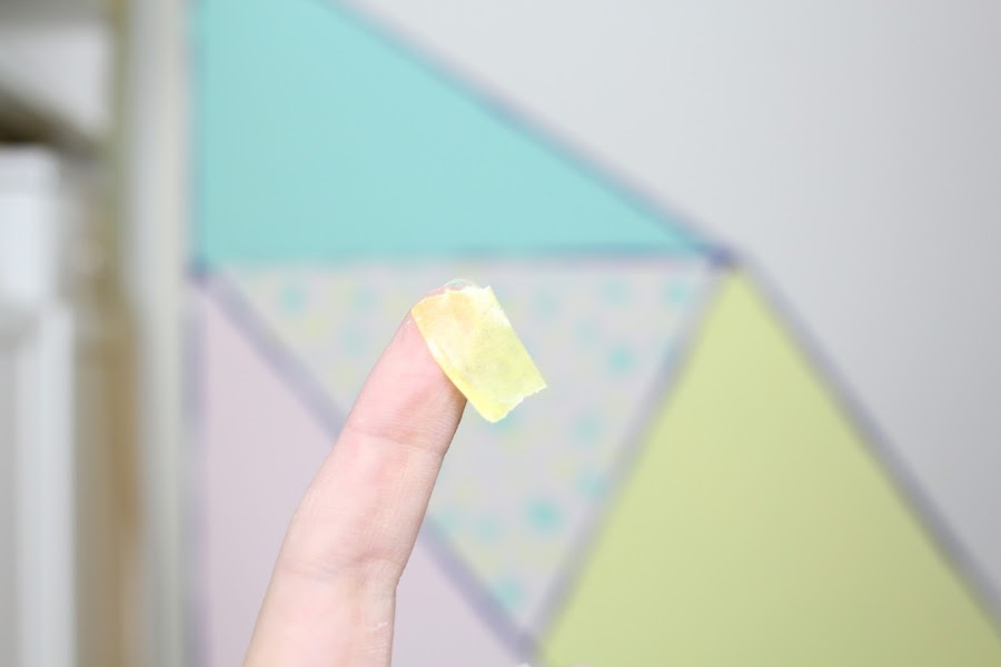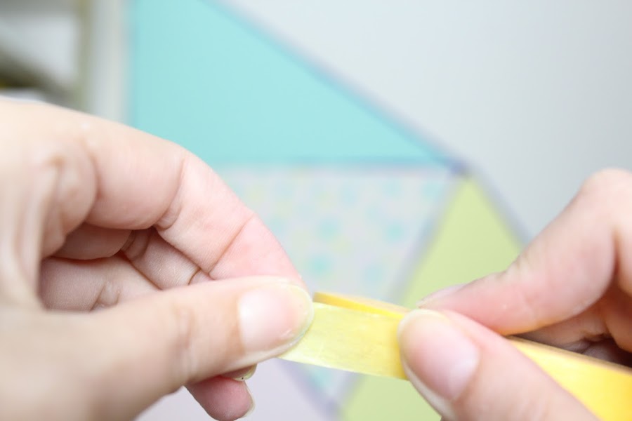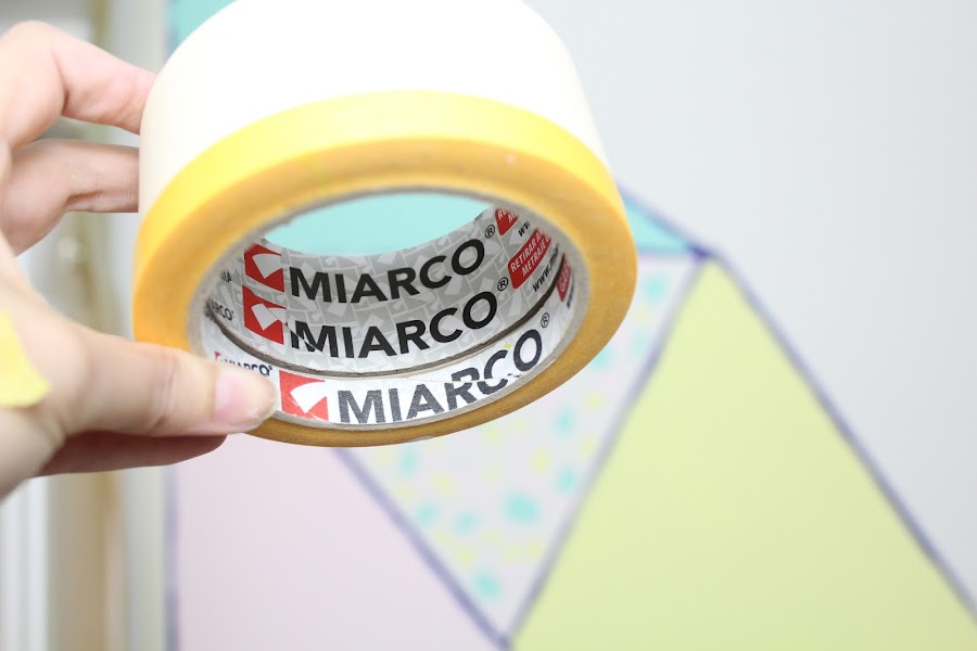 2 Paso: Con cinta Washi crearemos las diferentes formas geométricas, de ese modo podemos pintar cada forma de un color.