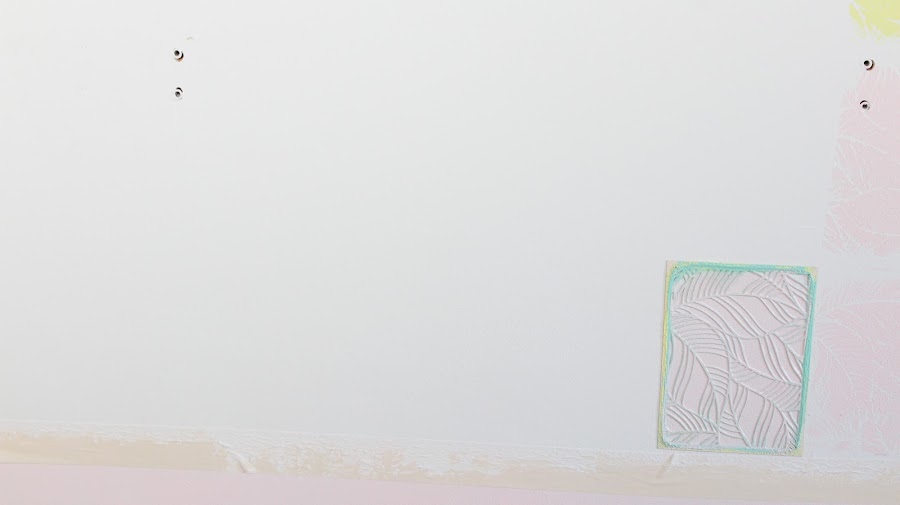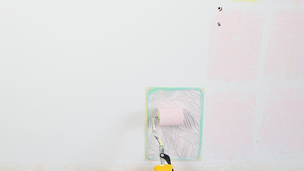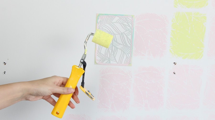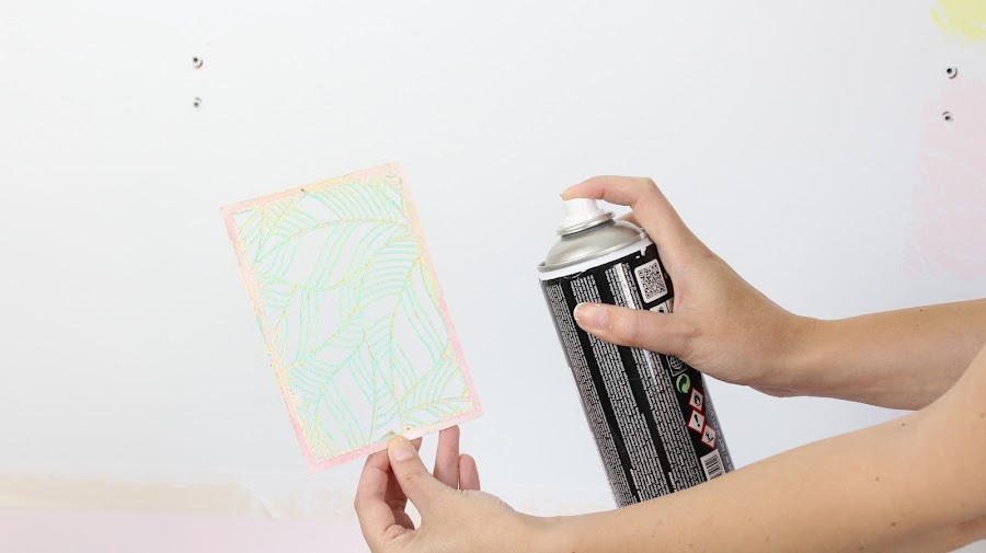 5 Paso: Aplicaremos spray adhesivo a la plantilla, este spray no deja residuos en la pared, la colocaremos en la pared y pintaremos con un rodillo. Al ser una platilla pequeña tendremos que tener cuidado al pintar, podemos ayudarnos con un pincel pequeño.