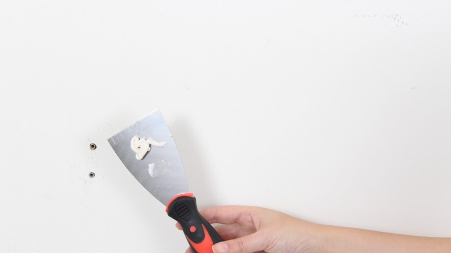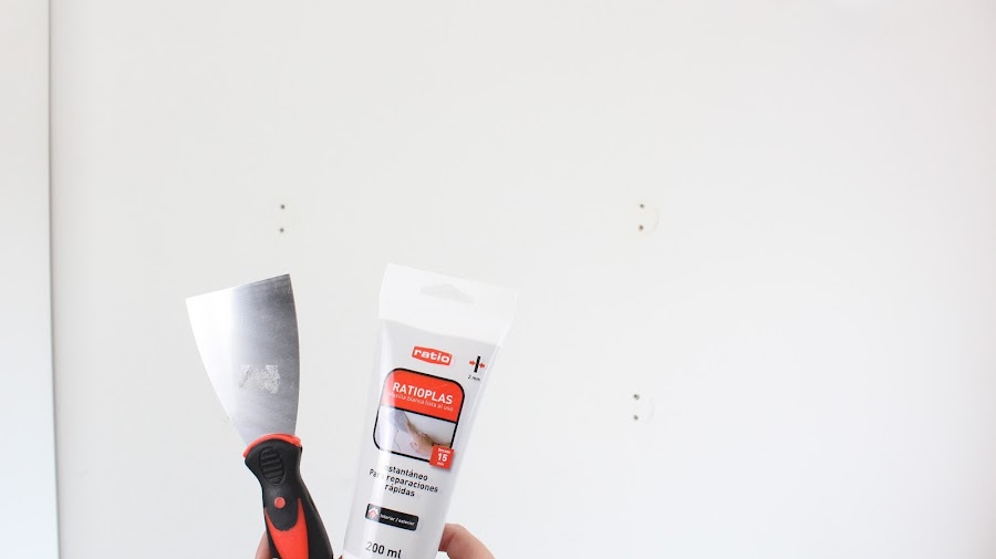 1 Paso: Pondremos masilla en los agujeros y imperfecciones de la pared, en mi caso tenia dos agujeros que tapar.