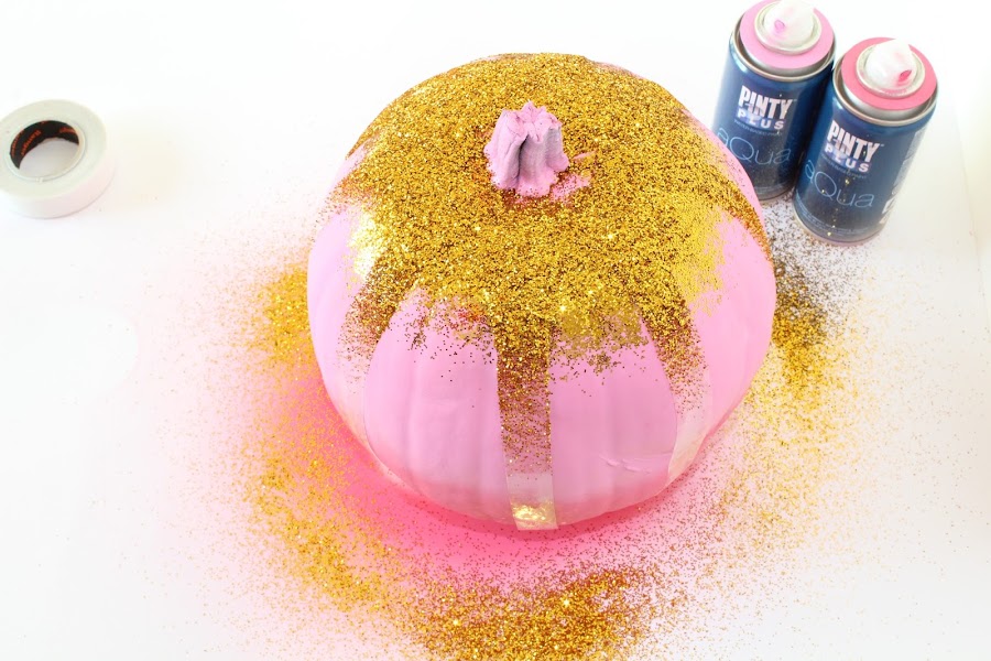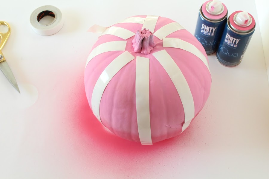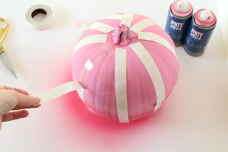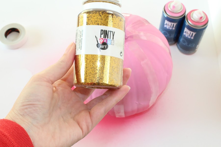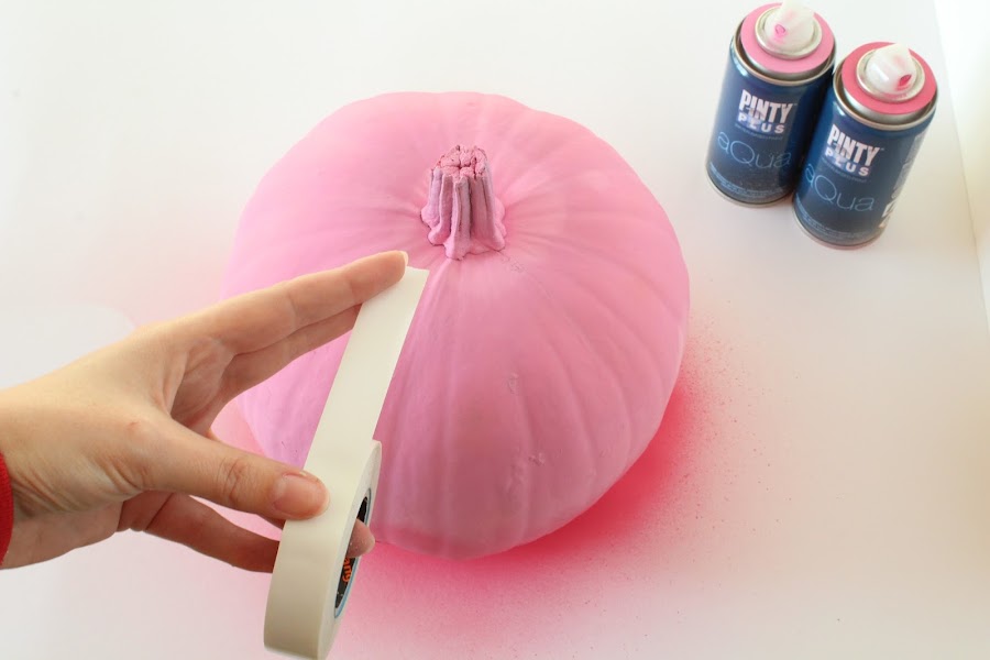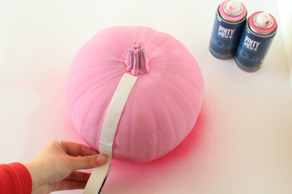 1 Paso: Pintamos la calabaza con sprays Aqua de Novasol Spray, yo me he decantado por un degradado en rosa.