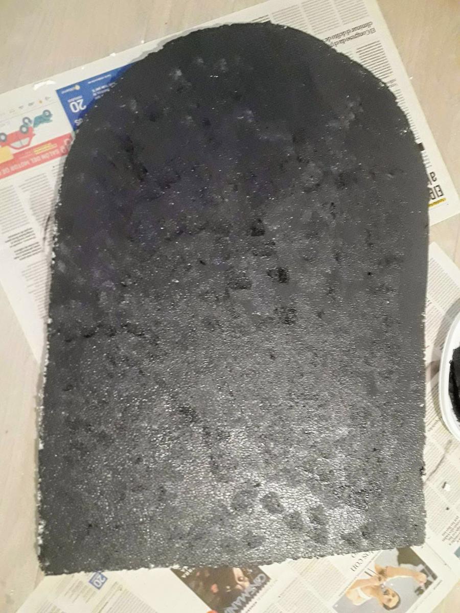 Yo pinte la tumba de negro y después mezclé esa pintura con blanco. Se formó un gris oscuro que utilicé para darle un toque añadido con una esponja. De esta forma se da un aspecto de más viejo.