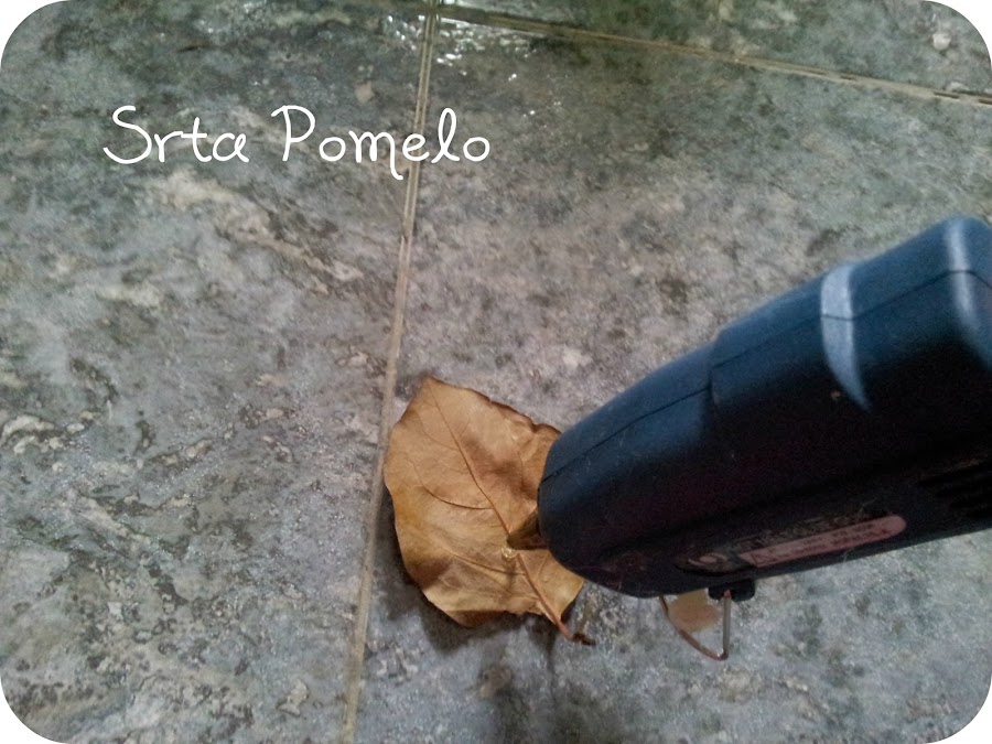Pegamos una a una las ramitas y las hojas, cubriendo todos los huecos sin que se vea el cartón.
