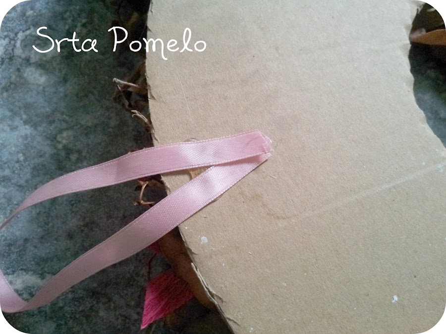 Por la parte de atrás le pegamos o grapamos un trozo de lazo o cuerda, para poder colgarlo en una puerta.