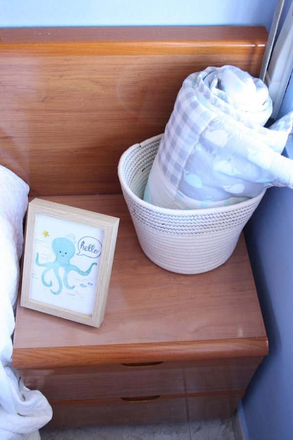 La cesta de tela es de Primark Home y el marco de fotos de Leroy Merlin.