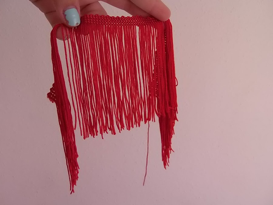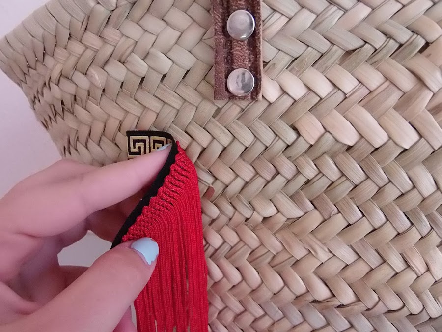 Lo primero que voy a hacer es pegar la cinta encima de los flecos,una vez los tenemos pegados los colocamos en la parte del cesto donde más nos guste,y queda genial!!