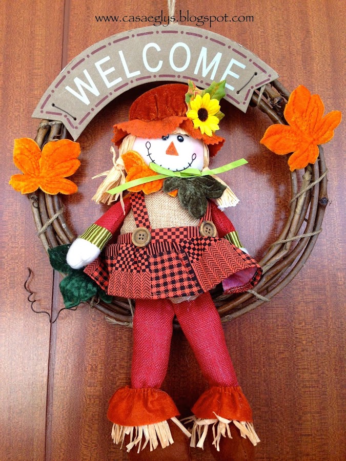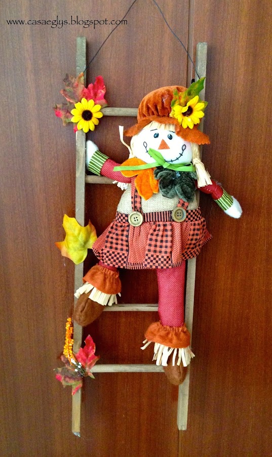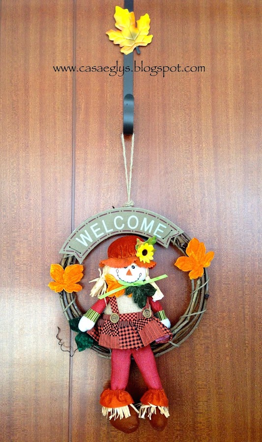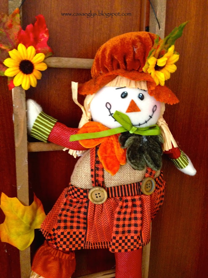 Y ahora te muestro como con pequeños detalles decoramos algunos lugares de CasaEglys. Comenzamos con la entrada del garaje, que es prácticamente nuestra entrada común, casi nunca usamos la puerta principal. Aquí veraz a esta simpática espantapájaros dándonos la bienvenida.