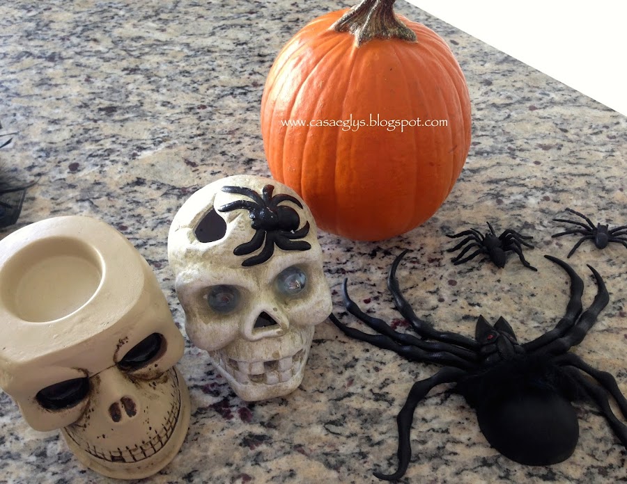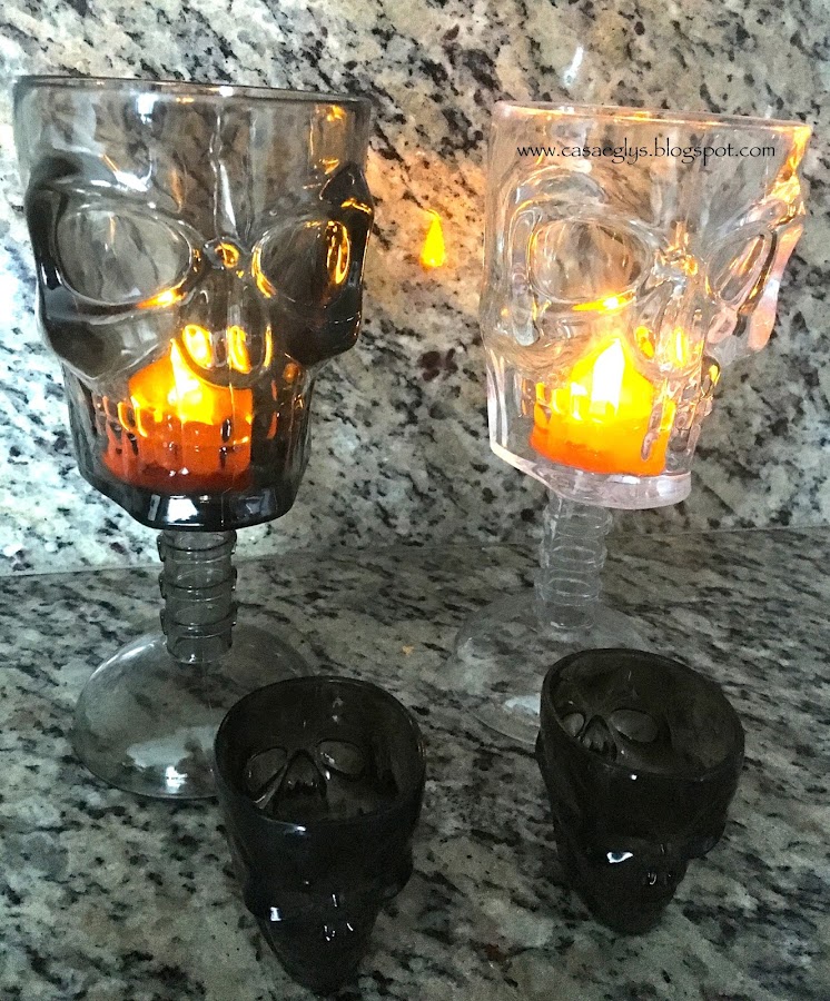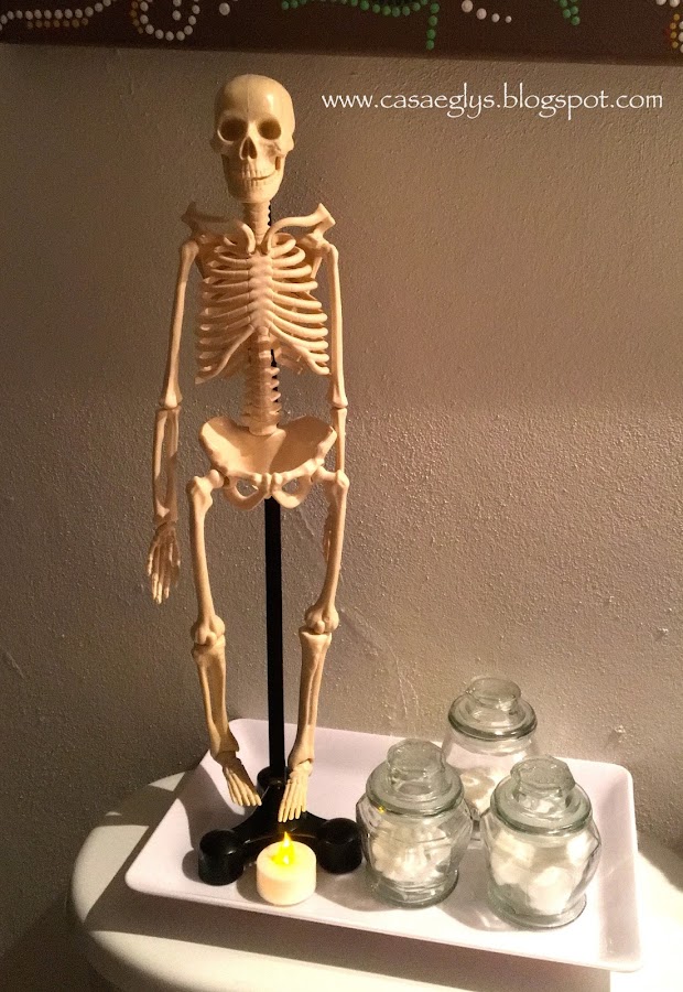 Las calaveras que conseguí son como candelabros, así que les pusimos unas velas de esas de baterías.