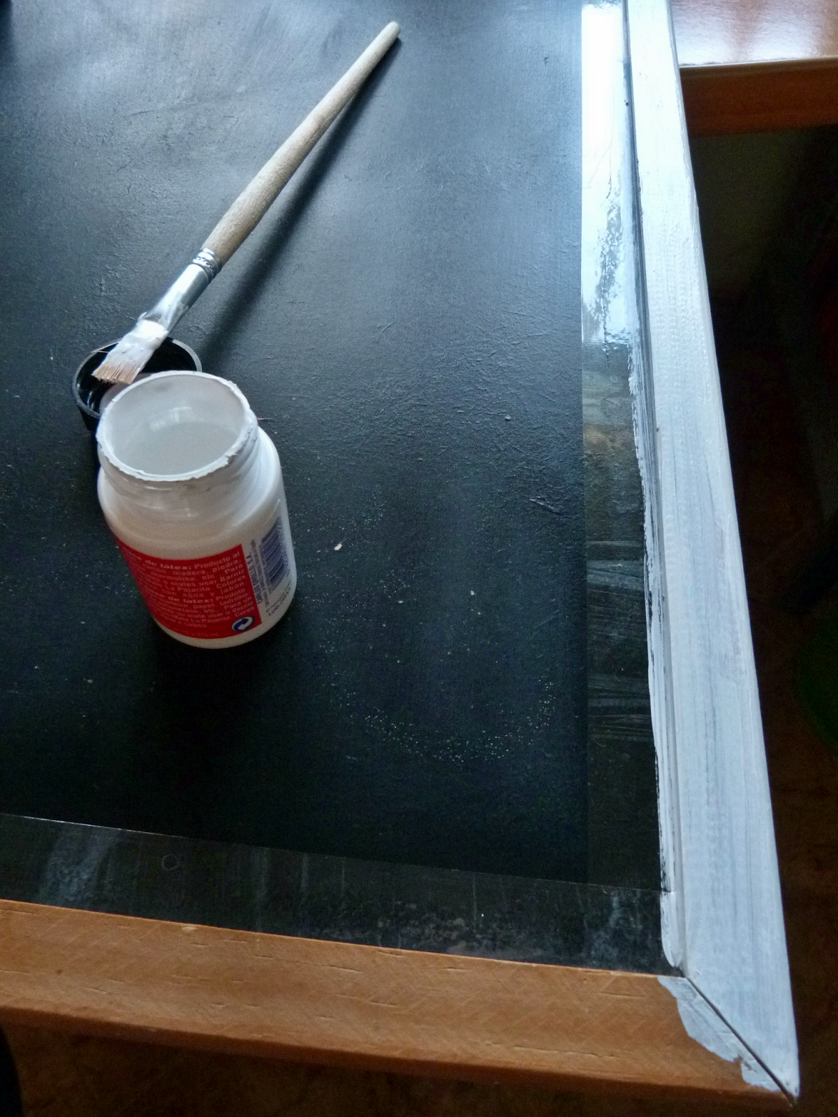 Limpié muy bien el marco, con agua y jabón. Con pintura acrílica le dí dos capas.