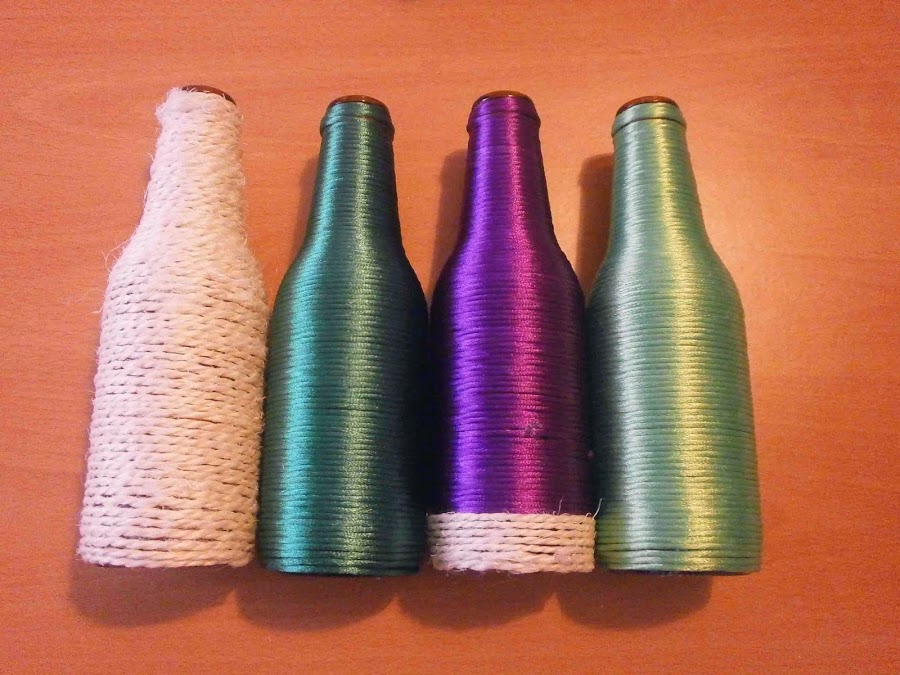 Rodeé las botellas con cuerda, poniendo al principio y al final silicona.