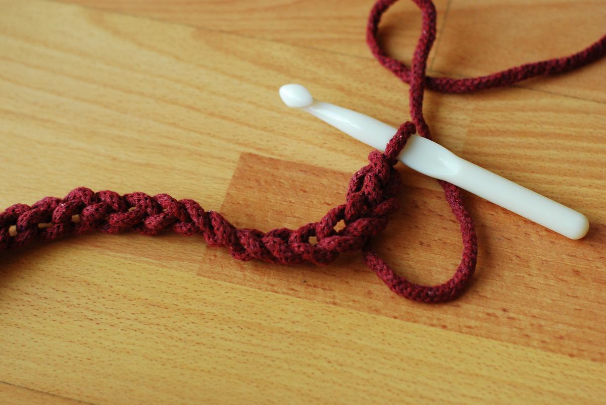 Y mucho misterio no tiene la cosa, tenemos que hacer una cadeneta tan larga como para enrollar toda la maceta. Yo os recomiendo que lo vayáis comprobando o que en todo caso no cortéis el hilo, por si tenéis que hacer alguna cadeneta de más.
