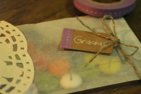En esta ocasión los sobres traslúcidos han sido los elegidos porque puedes intuir lo que hay dentro, si ponéis objetos de colores le da un toque muy bonito.