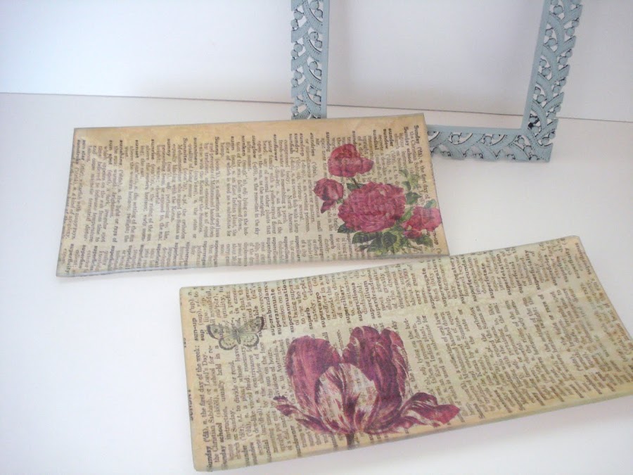 Y sobre estas flores he hecho otro decoupage con una lámina de diccionario antiguo. Esta combinación es éxito seguro y a mi me encanta!
