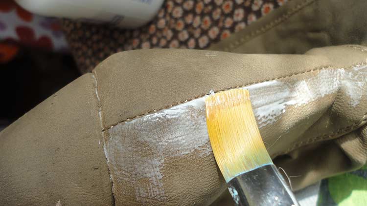 Dale cola blanca sin miedo, pero bien extendida, en este caso no va rebajada en agua , ya que la piel del zapato de todas todas yo sospechaba que iba a chupar lo suyo.