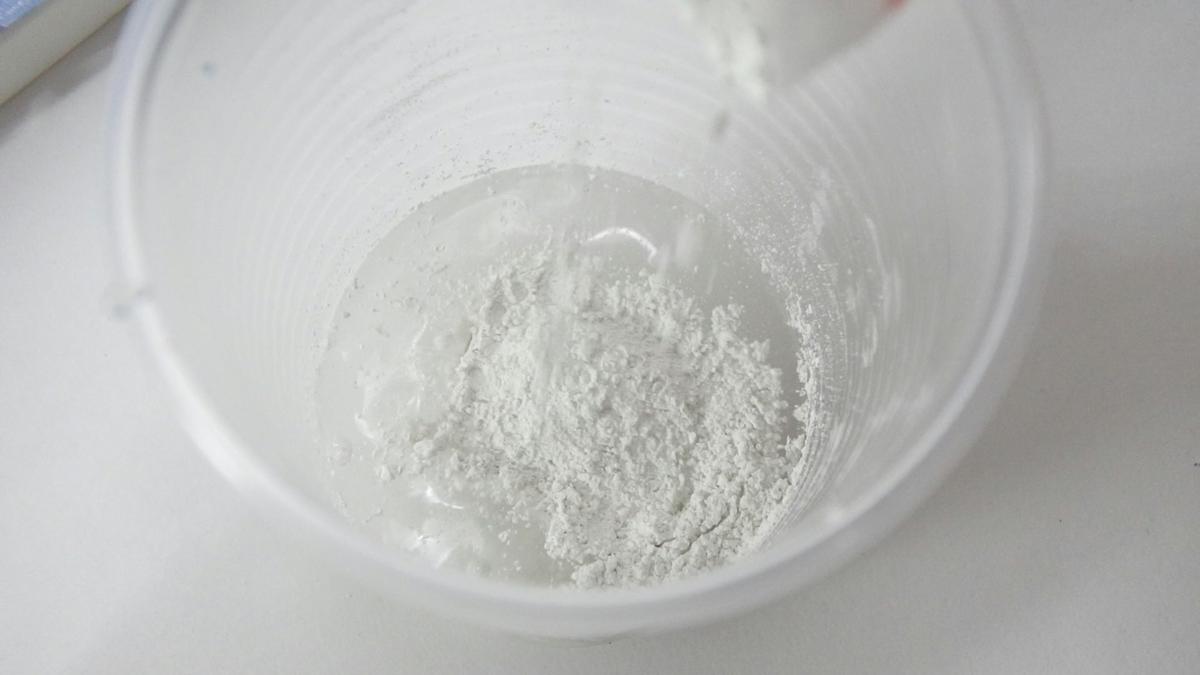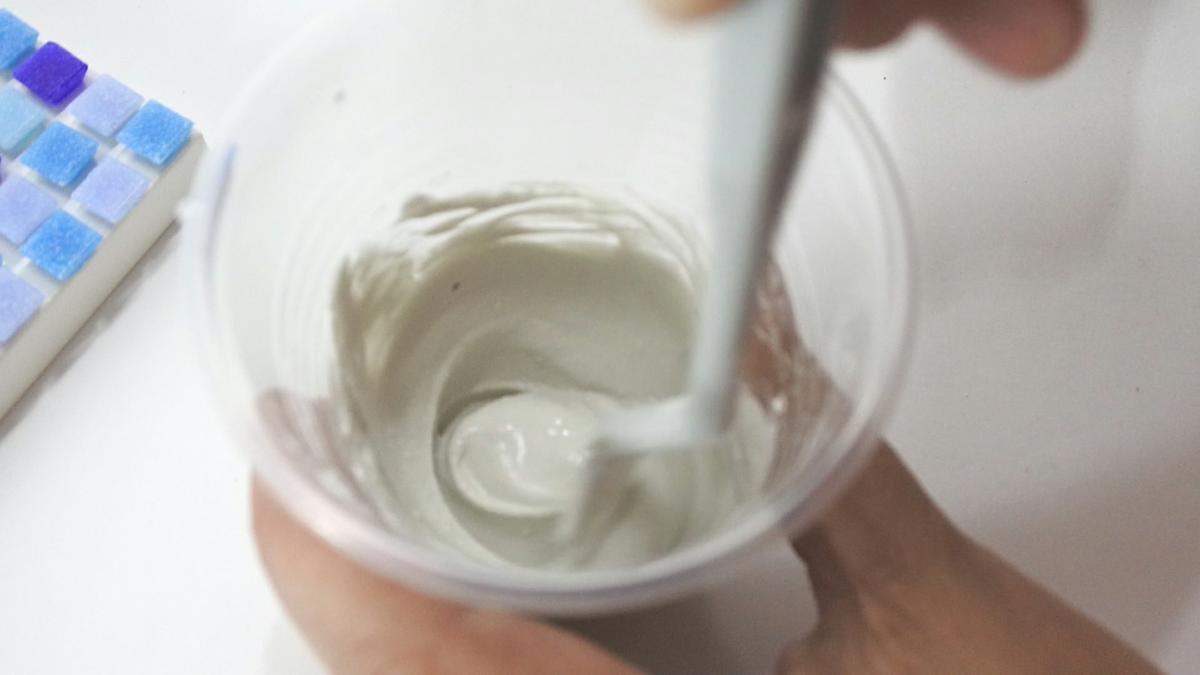 Para preparar la masilla tan solo necesitamos un poco de agua y una paleta pequeña para remover y aplicar. Yo os recomiendo que quede más bien espesa ya que será más fácil de aplicar.