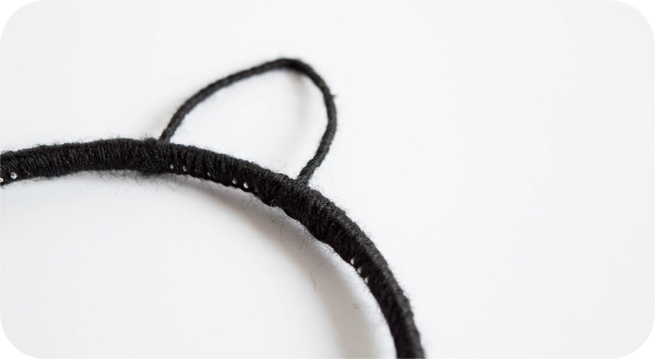 Repite este proceso con la otra oreja y llega hasta el final de la diadema para forrarla entera.