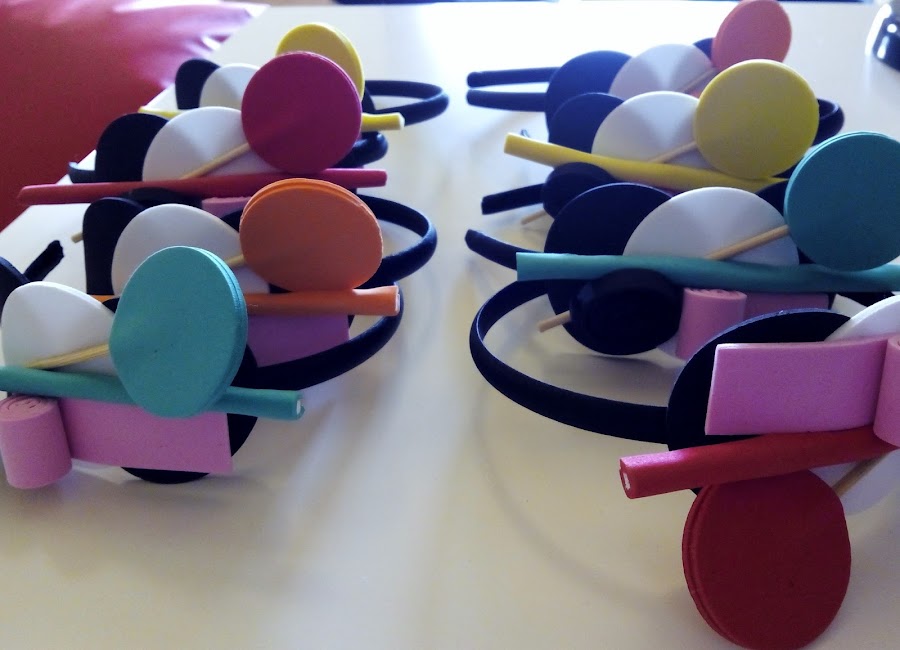 Elaboré ocho diademas, de cuatro colores distintos.