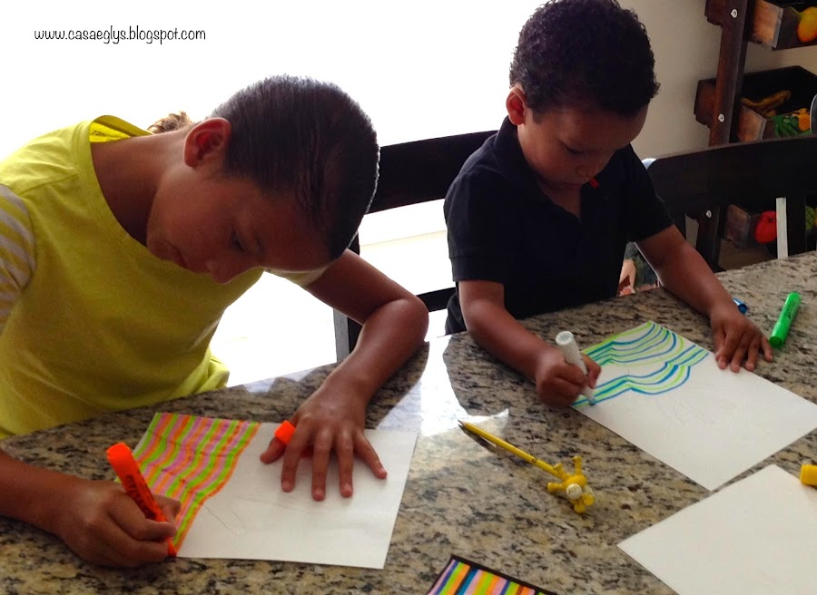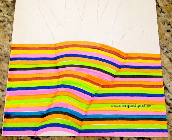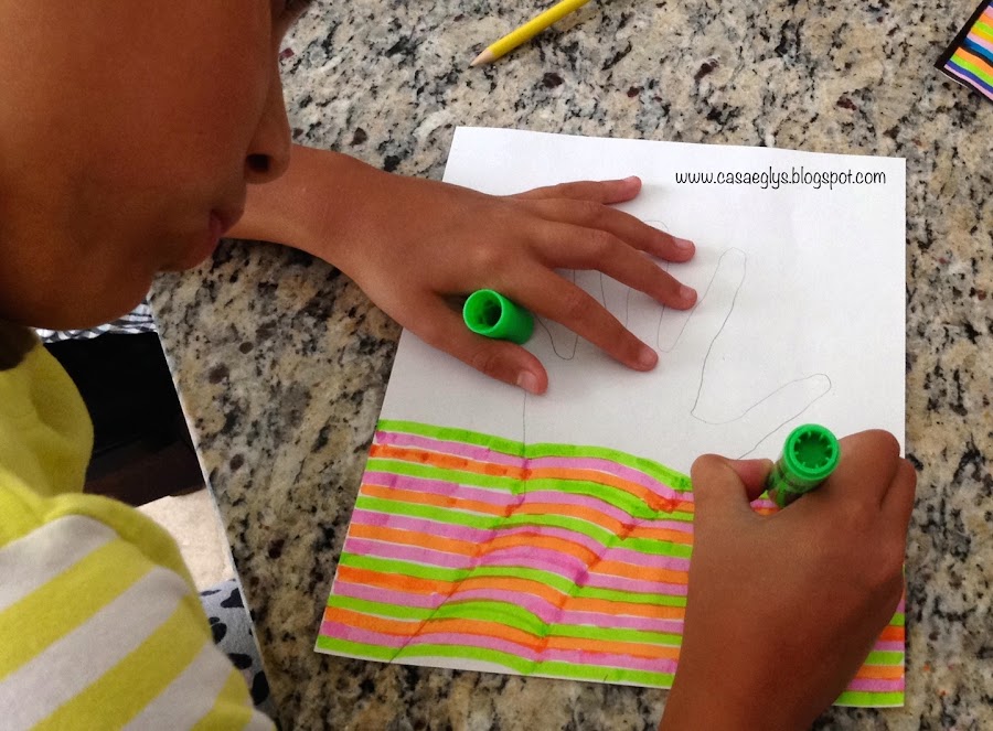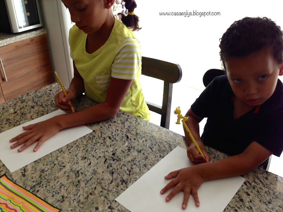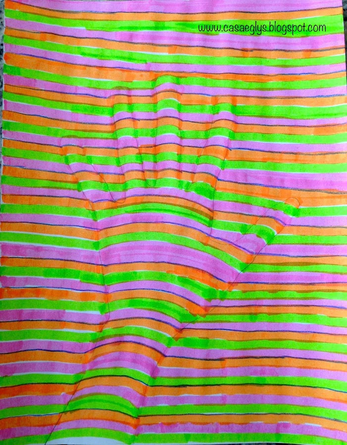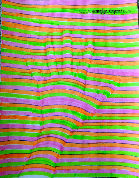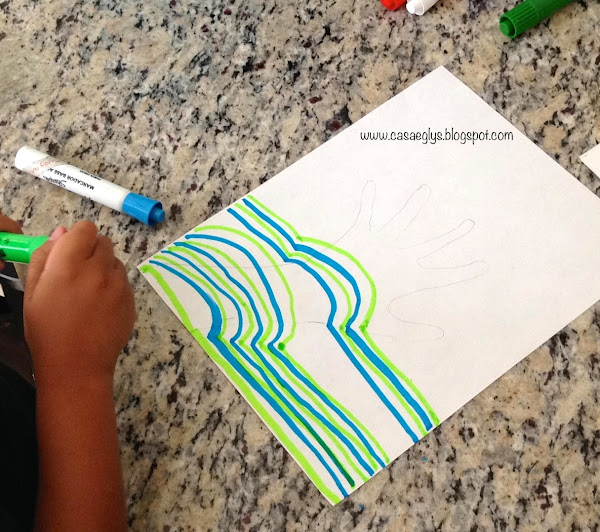 Ahora nos pusimos con los niños a dibujar nuestras manos en 3D, esta actividad ya la había realizado en el curso de verano de niñas que hicimos el año pasado, pero me pareció una buena idea repertorio y decirles como lo hicimos.