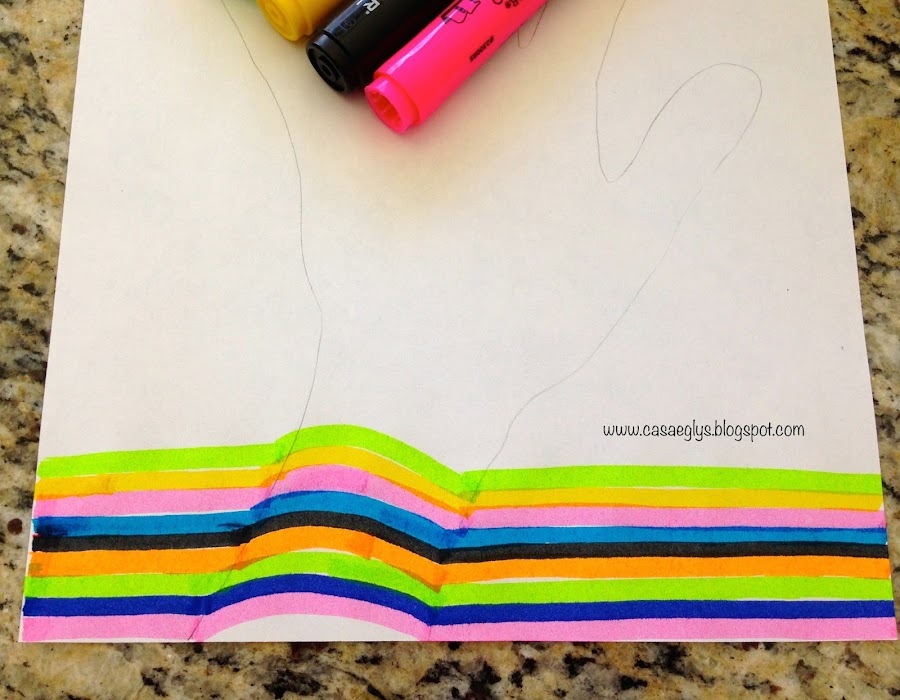 Marcadores y resaltadores de diferentes colores.La idea es hacer la silueta de tu mano con el lápiz, porque después la tenemos que borrar.