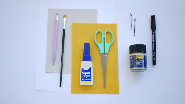 Este disfraz es bastante sencillo, solo necesitas: pintura de purpurina dorada, una brocha, fieltro blanco, papel y lápiz, tijeras, un poco de alambre y horquillas para el pelo.
