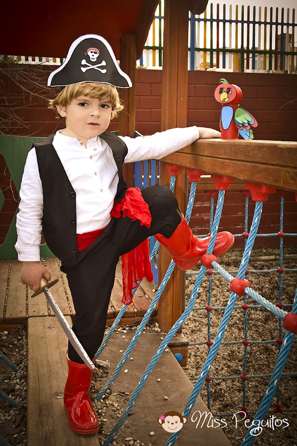 Listos nuestros complementos para el disfraz podemos usar cualquier pantalón que tengamos por casa, preferiblemente negro, una camisa blanca o camiseta de rayas, si tenemos un chaleco mejor, fajín, unas botas y.... ¡¡¡¡Al abordajeeeee!!!!