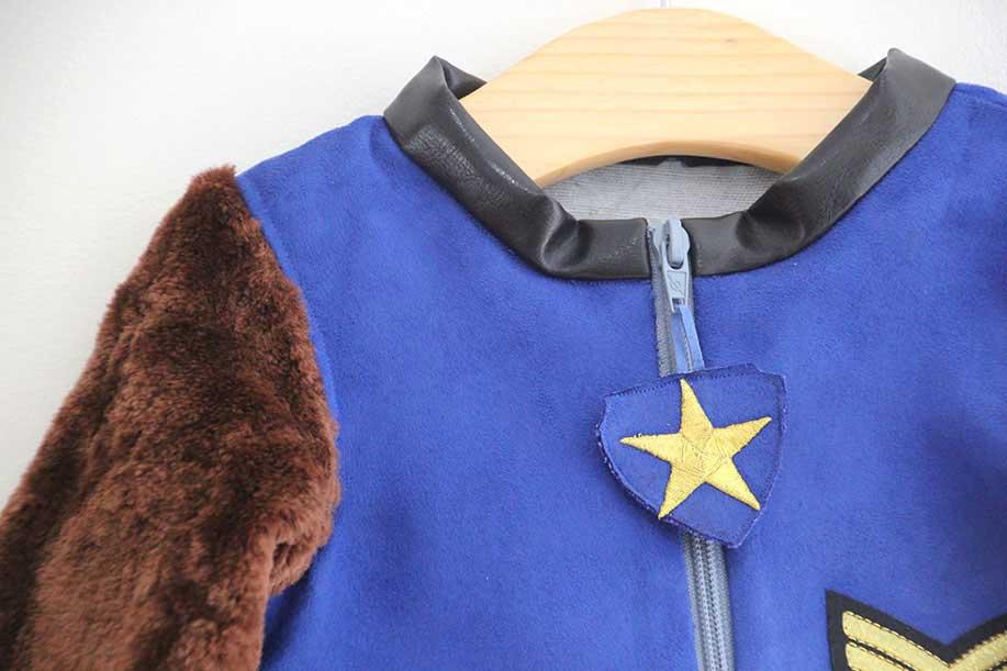 He elegido a Chase de la Patrulla Canina porque Santiago está obsesionado con los WUAUS WUAUS, y me ha parecido una buena idea aprovechar ahora que están todos los niños super ilusionados con estos dibujos. Además, a raíz de este disfraz seguro que podéis hacer, con otras telas, el personaje de la patrulla que más les guste a vuestros peques