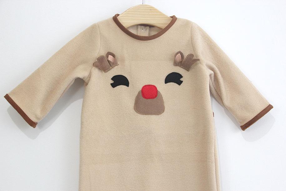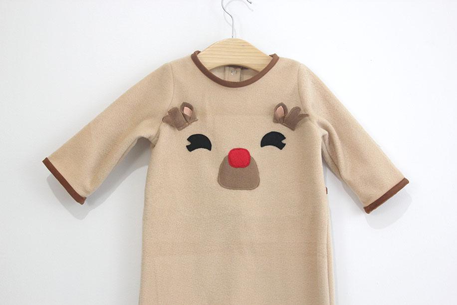 Este pijama es muy muy fácil de hacer, y las que os animéis ya veréis que mucho más fácil de confeccionar que el de Papa Noel que compartimos anteriormente. La verdad que al no llevar cuello, y las terminaciones hacerlas con bies… Esto facilita mucho la confección!!!