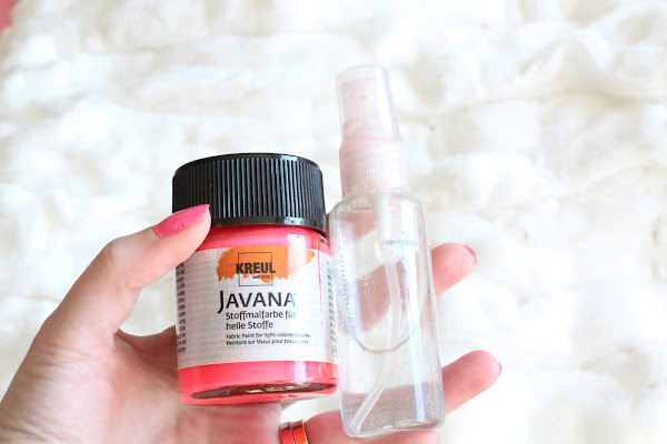 2 Paso: Antes de pintar iremos dando un poquito de forma al algodón. Para pinar el vestido lo mejor es diluir un poco de pintura con un poco de agua en un pulverizador. Primero con poca pintura y a medida que vaya cogiendo color aumentamos la pintura así da ese efecto degradado.