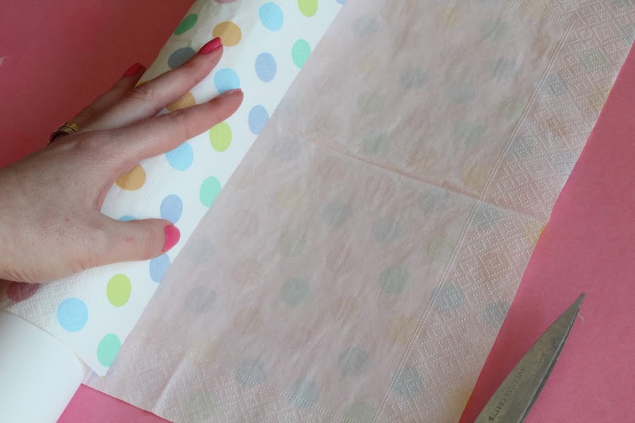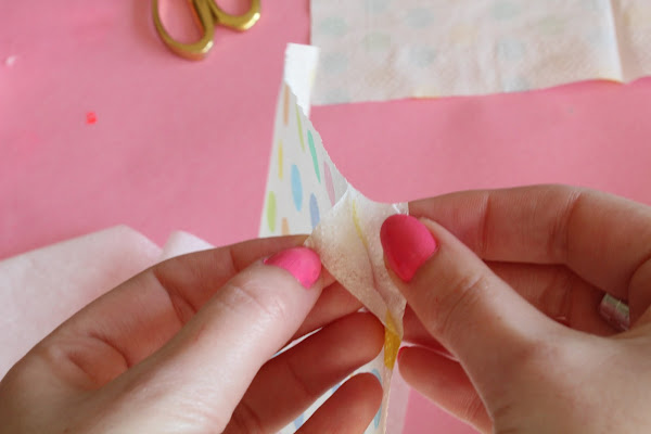 NOTA: Para la técnica del decoupage es importante separar las hojas de celulosa hasta tener la que tiene el estampado.